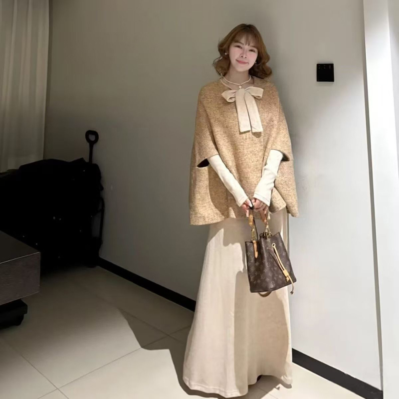 YF6275-图片色冬季别致新款长袖系蝴蝶结收腰中长款高级感针织连