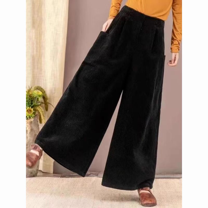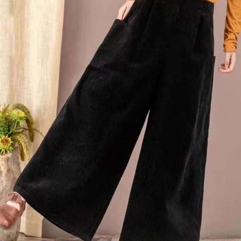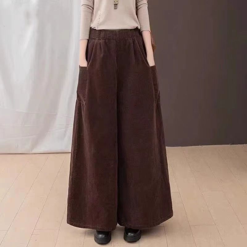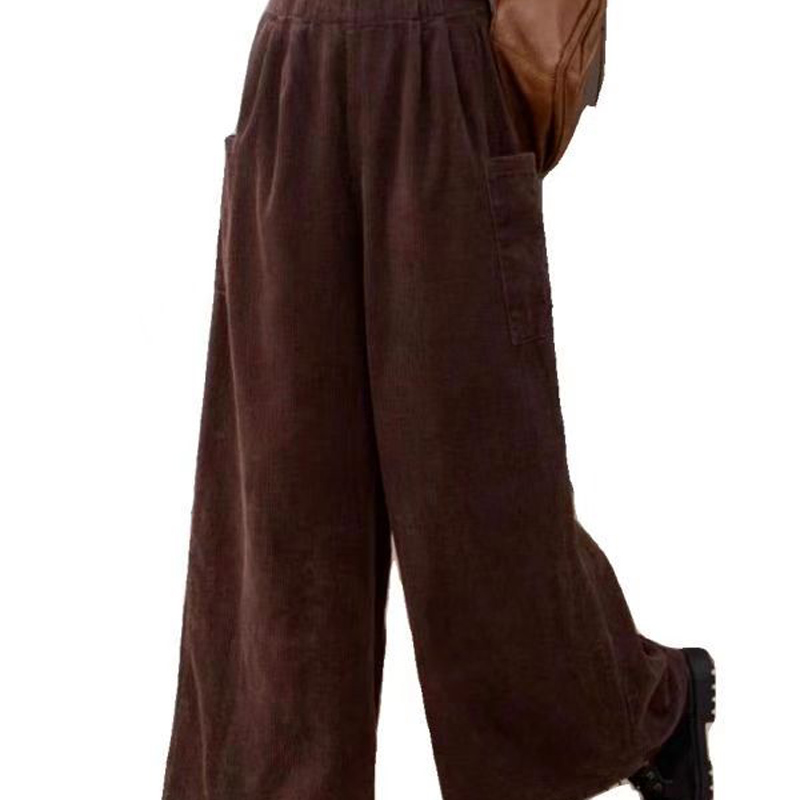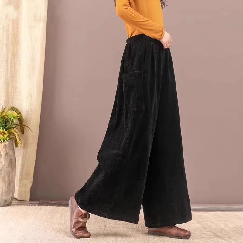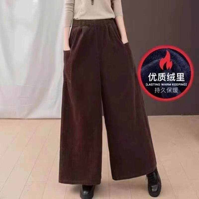 YF6283-(2色入内)冬季复古灯蕊绒加厚保暖松紧腰有口袋设计直筒坠地阔腿裤