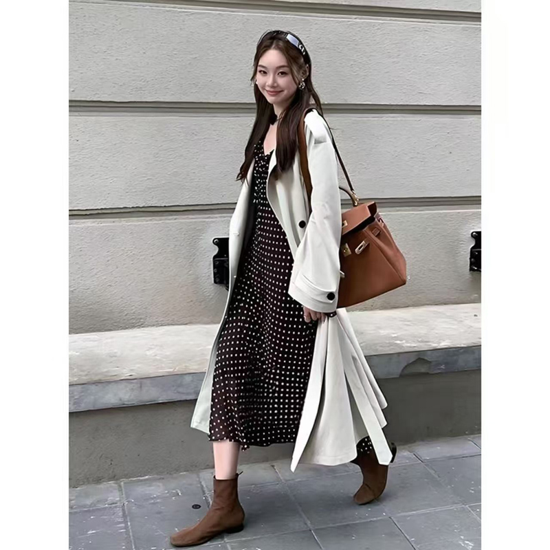 YF6282-(3色入内)慵懒风假两件拼接宽松显瘦直筒POLO领长袖小众秋冬长裙