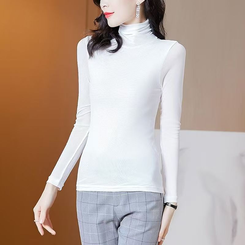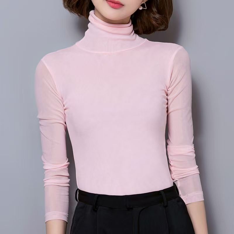 YF6294-(9色入内)高级感蕾丝秋冬百搭打底衫 透视长袖半高领弹力蕾丝上衣