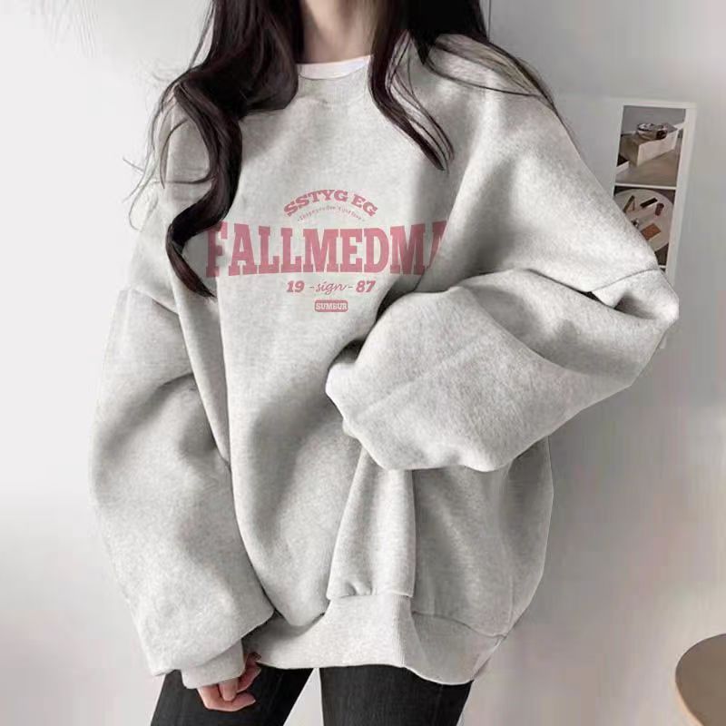 YF6325-(2色入内)原宿风雪人帽子印花个性印花慵懒风圆领长袖胖MM大码卫衣
