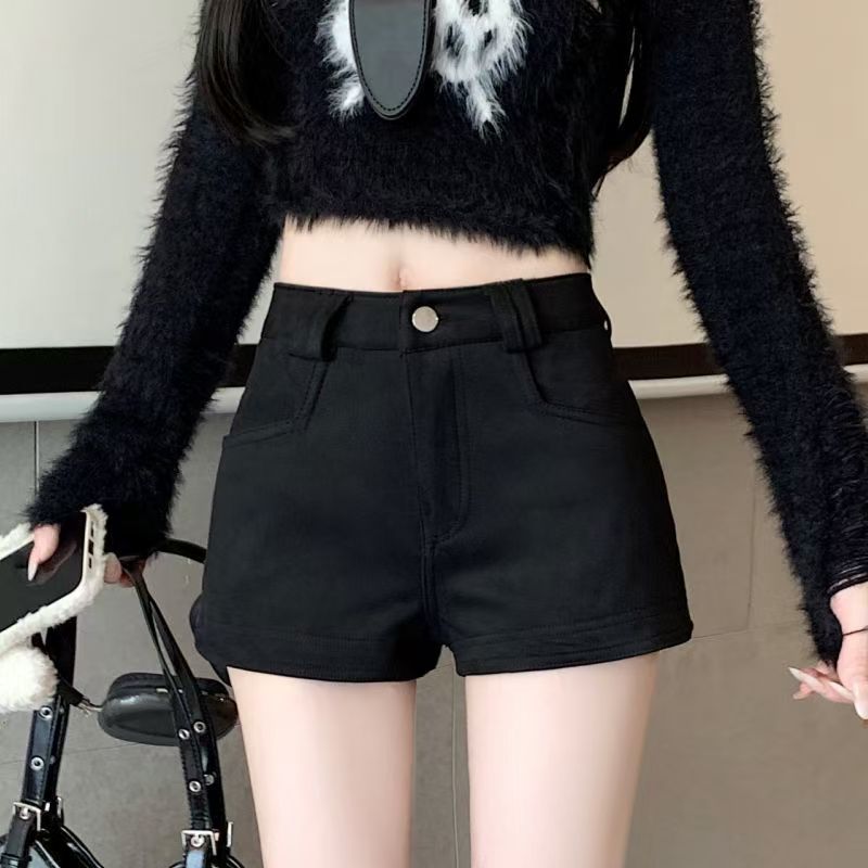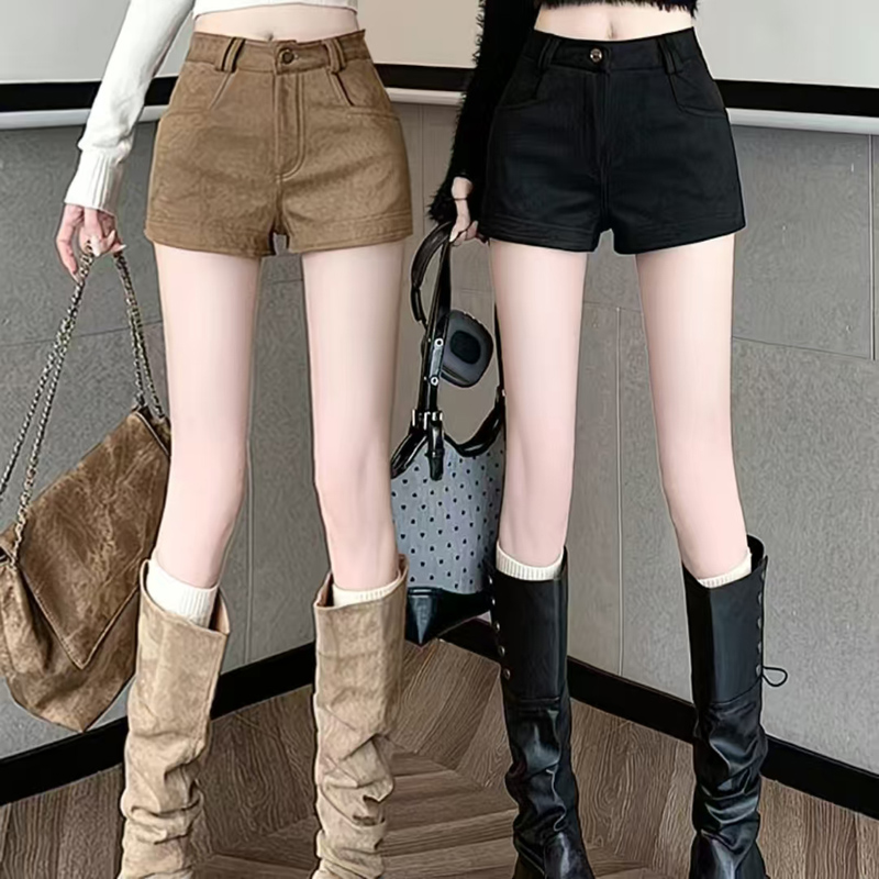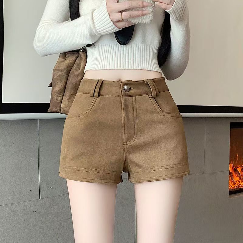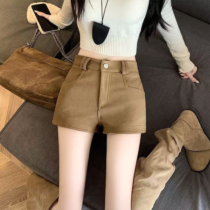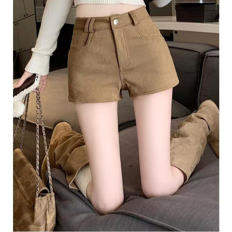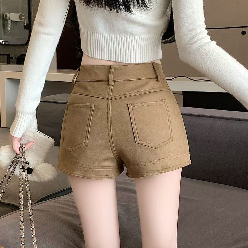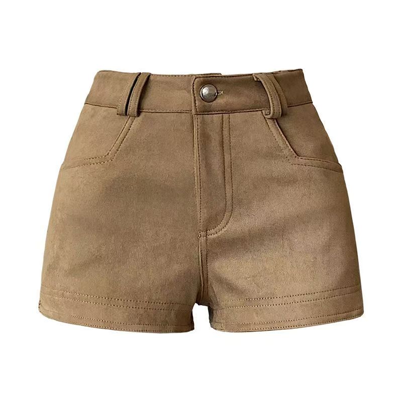 YF6326-(2色入内)辣妹秋冬时尚仿麂皮磨毛高腰包臀紧身百搭复古短裤