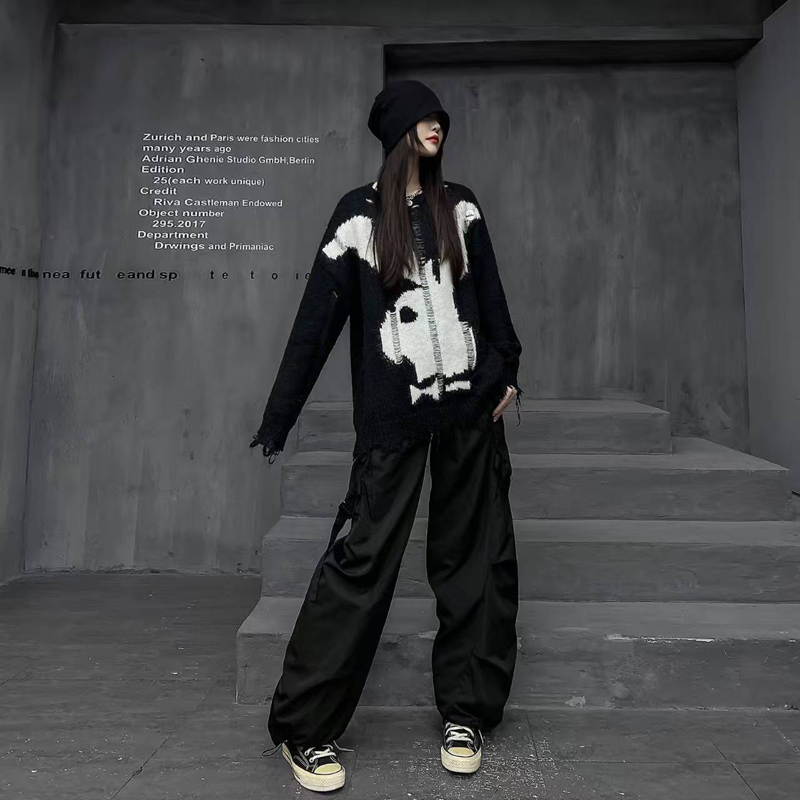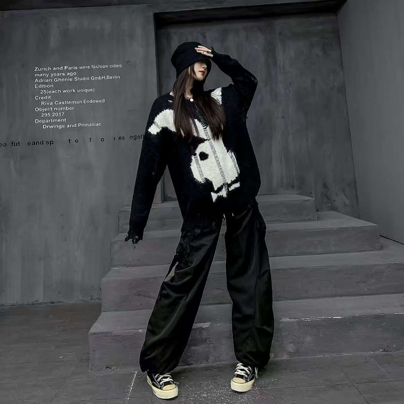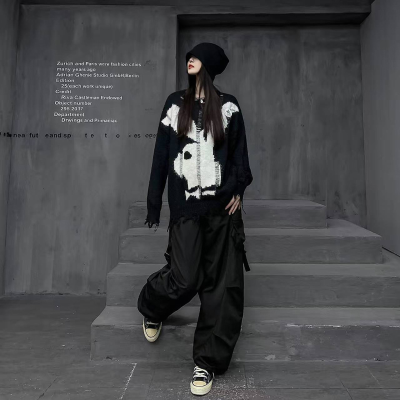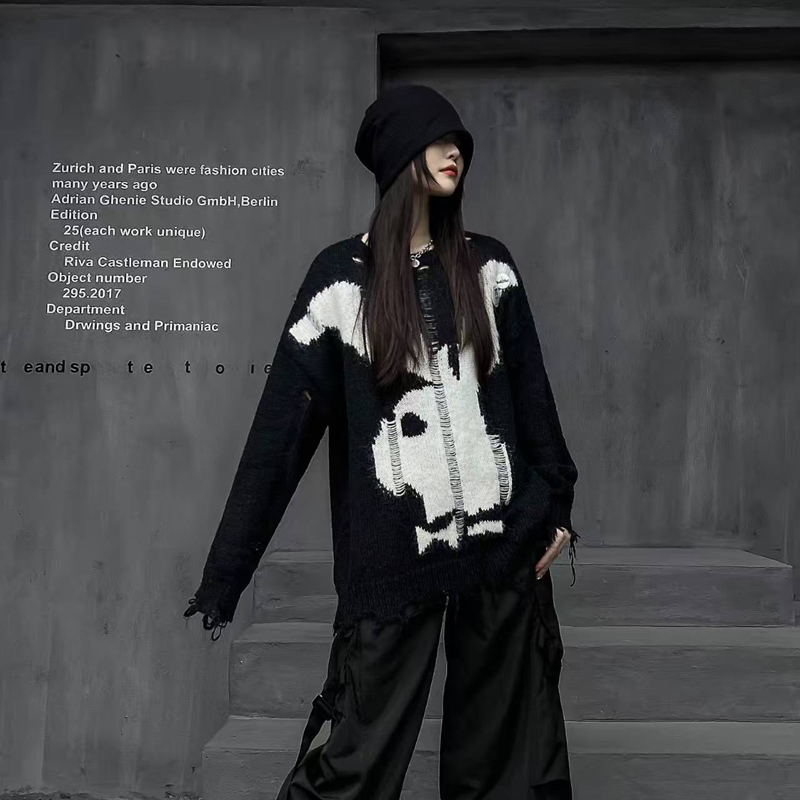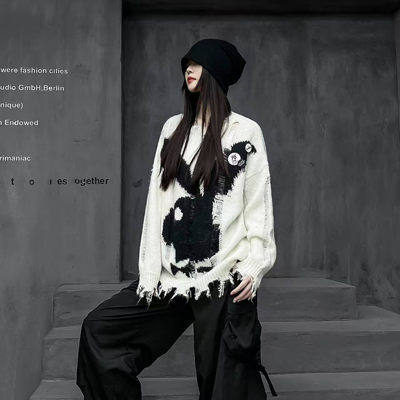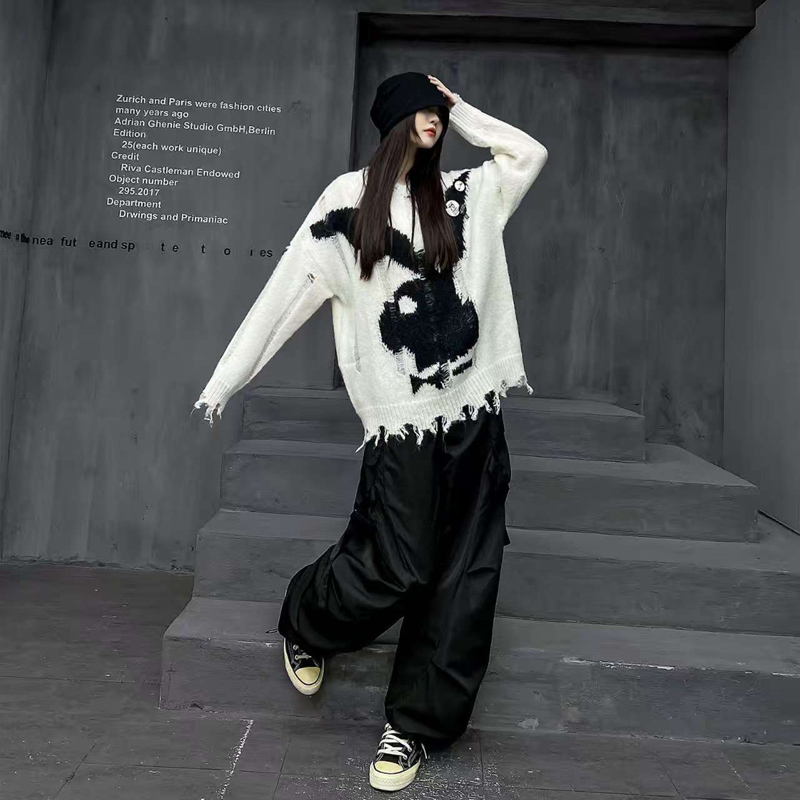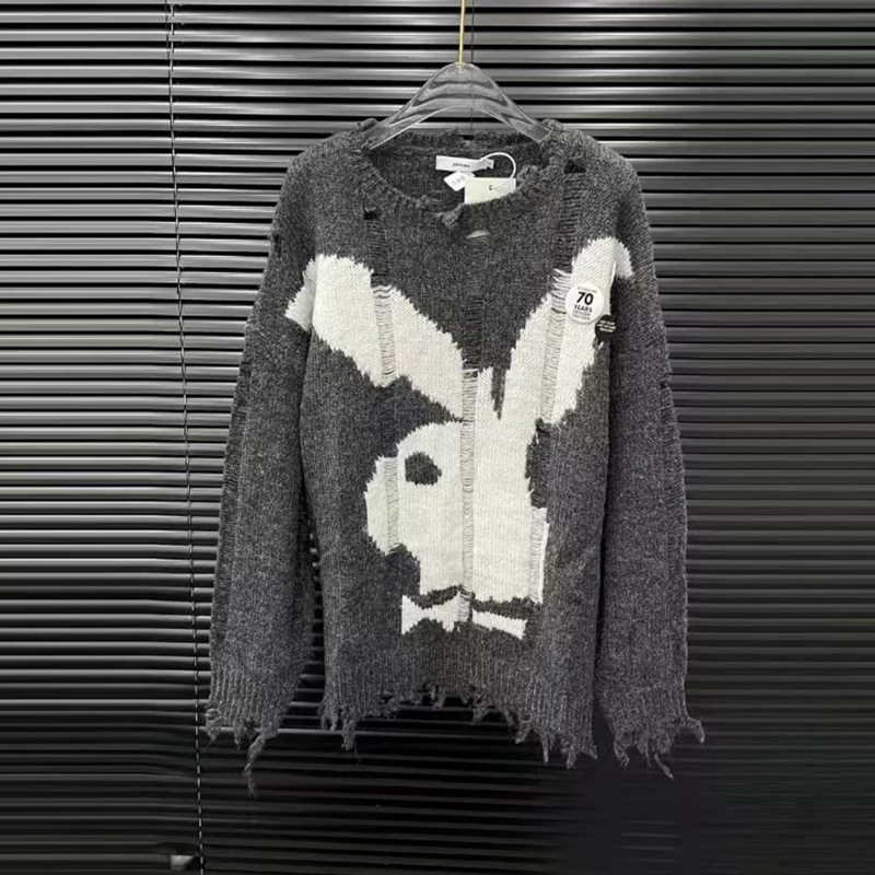 YF6360-(3色入内)韩版时尚个性兔兔提花设计圆领长袖流苏胖MM显瘦针织毛衣