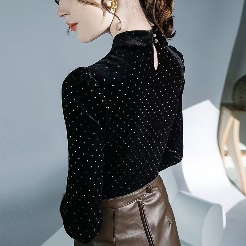YF6359-(3色入内)秋冬名媛气质不规则烫钻设计长袖高领德绒保暖新款打底衫