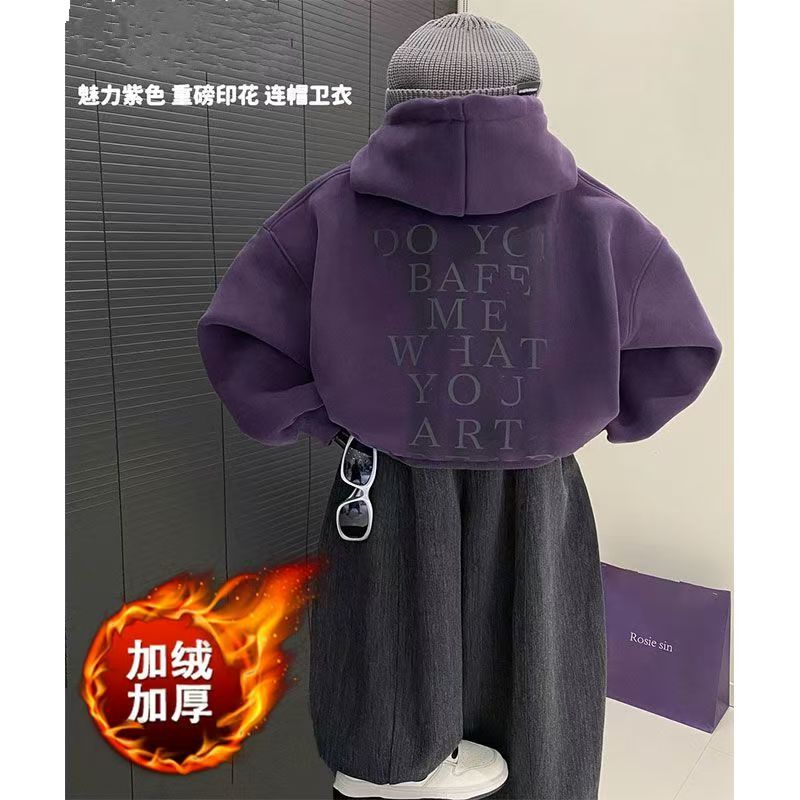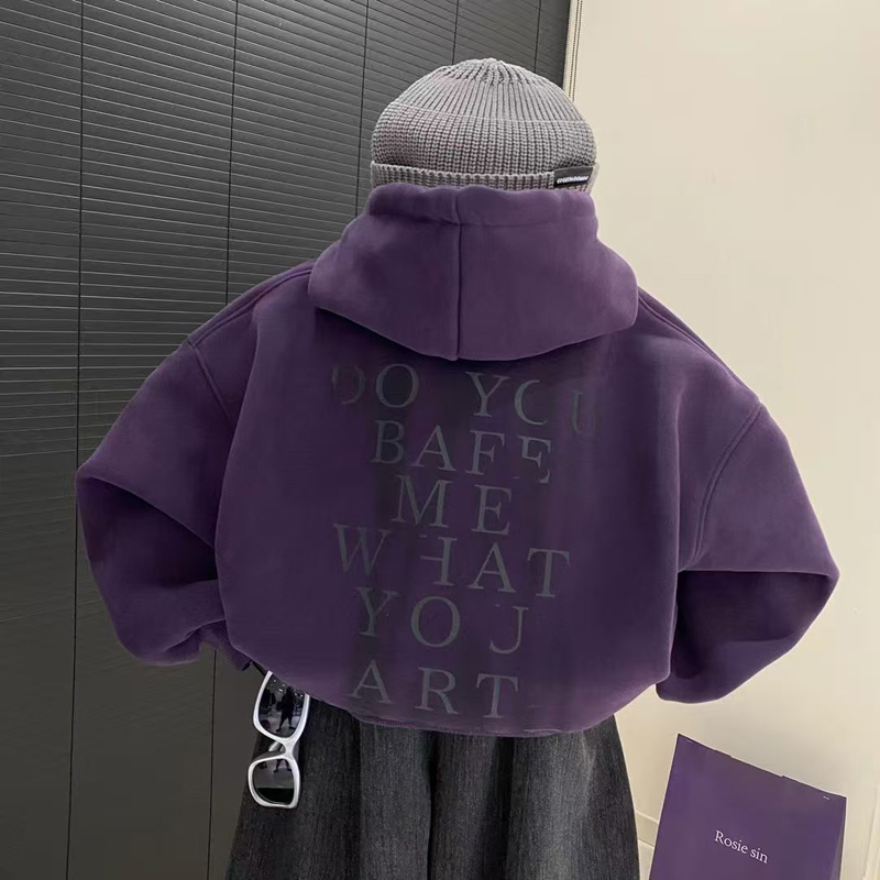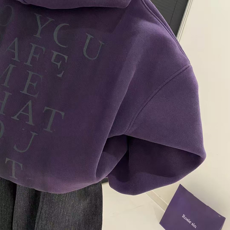 YF6366-图片色港风1902数字印花落肩长袖连帽奥粒绒加厚慵懒风卫衣