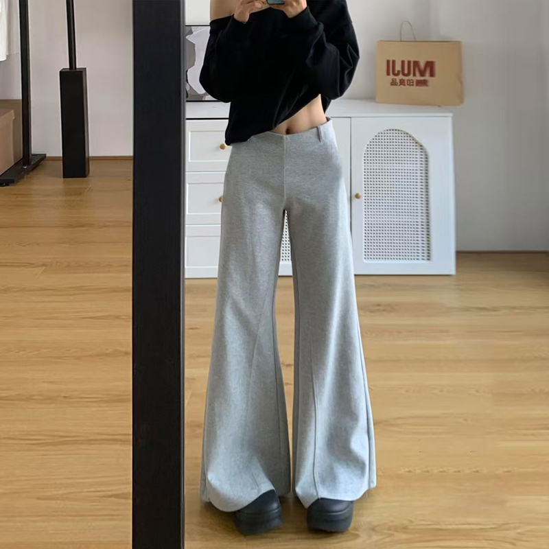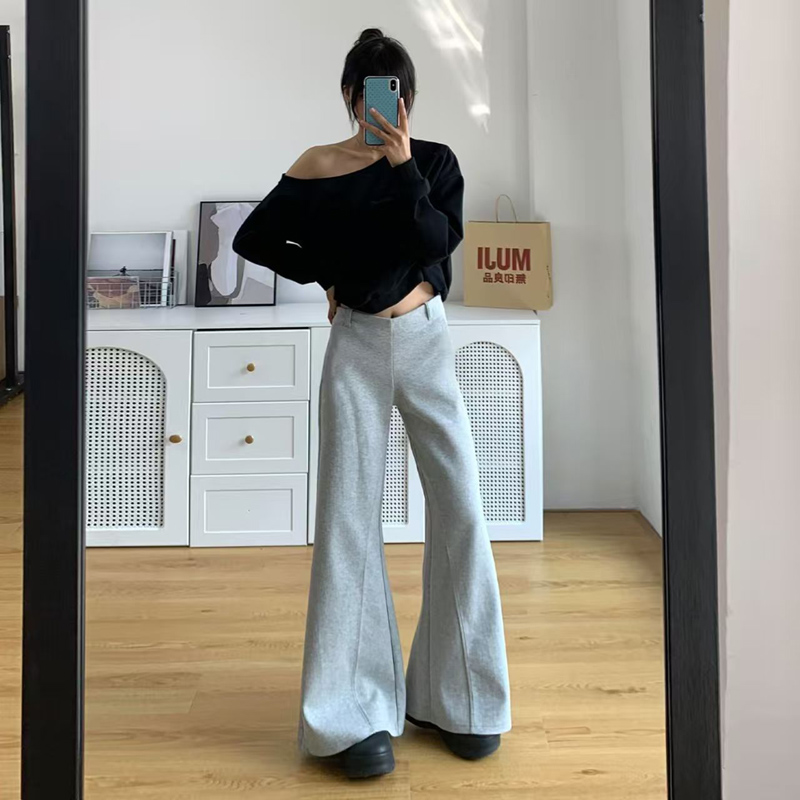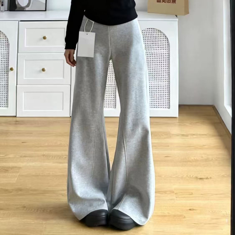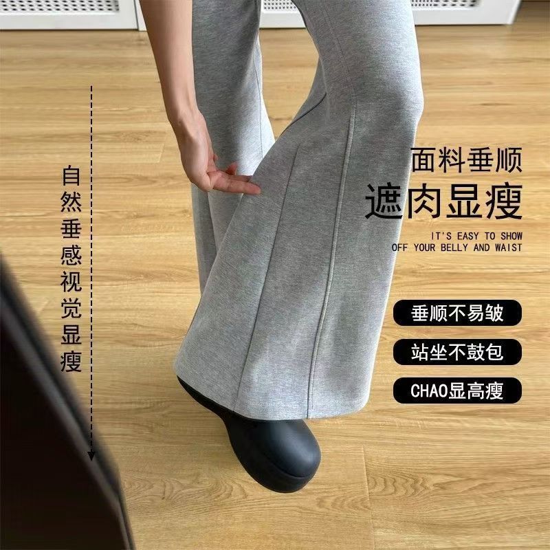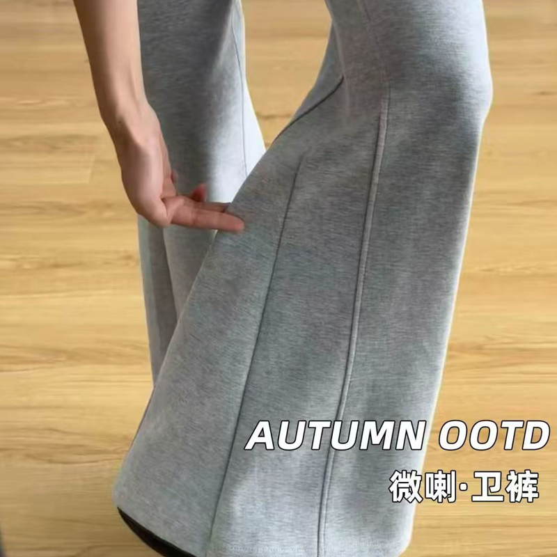 YF6367-图片色微喇叭冬装新款暗拉链设计高腰坠地感加绒运动休闲卫衣裤