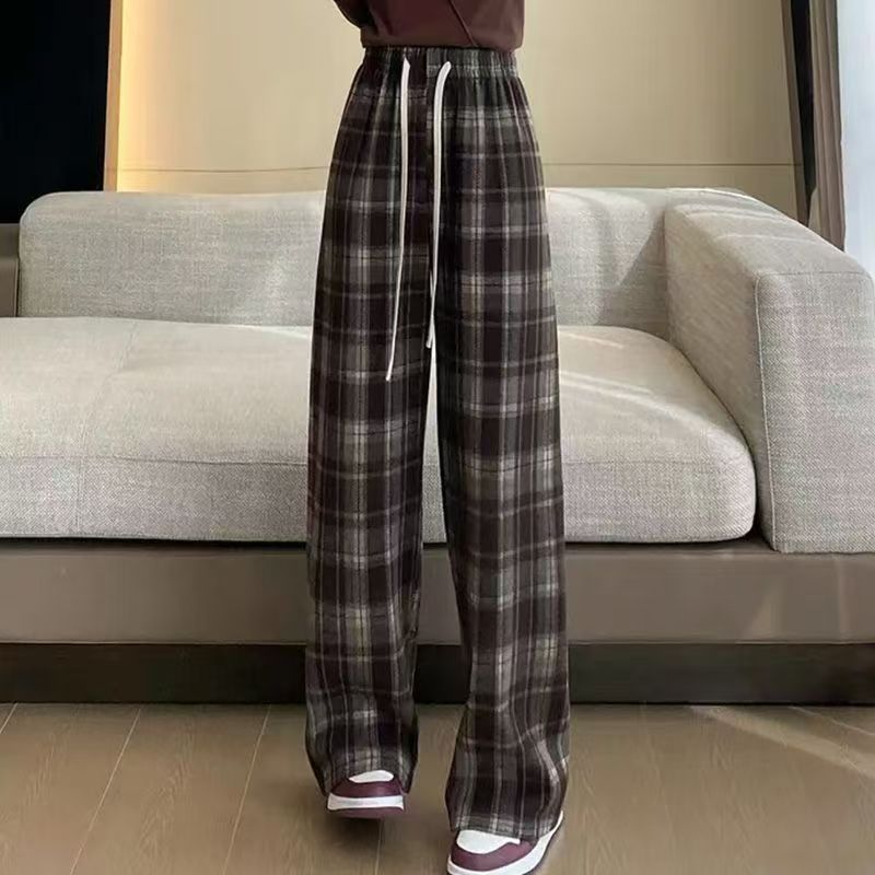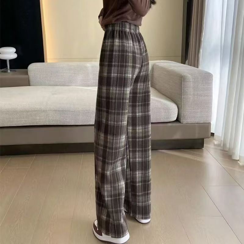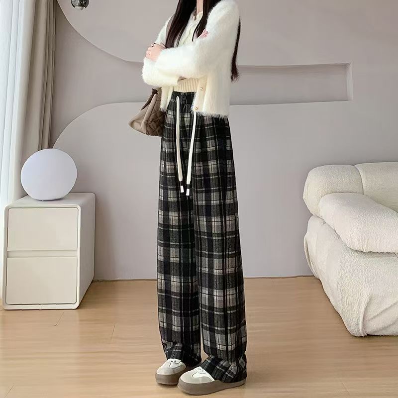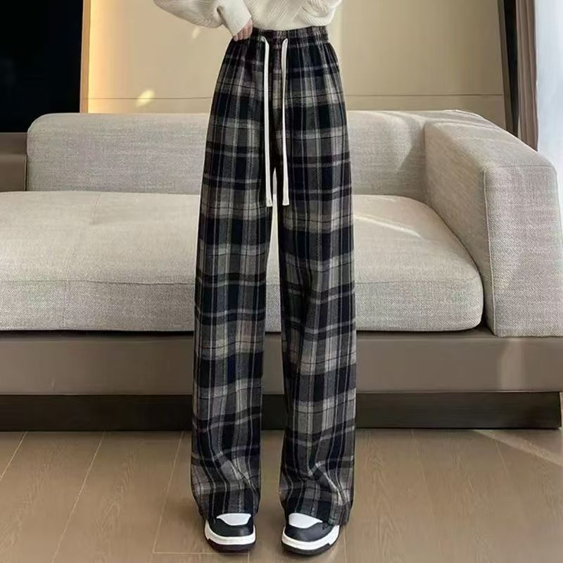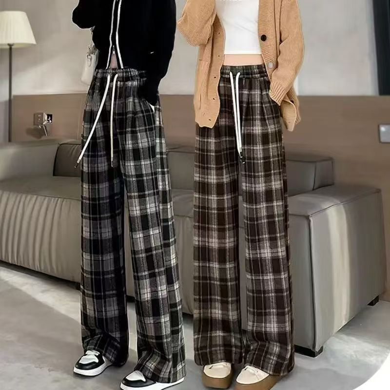 YF6389-(2色入内)秋冬抽绳松紧腰坠地感直筒阔腿复古百搭新款休闲裤