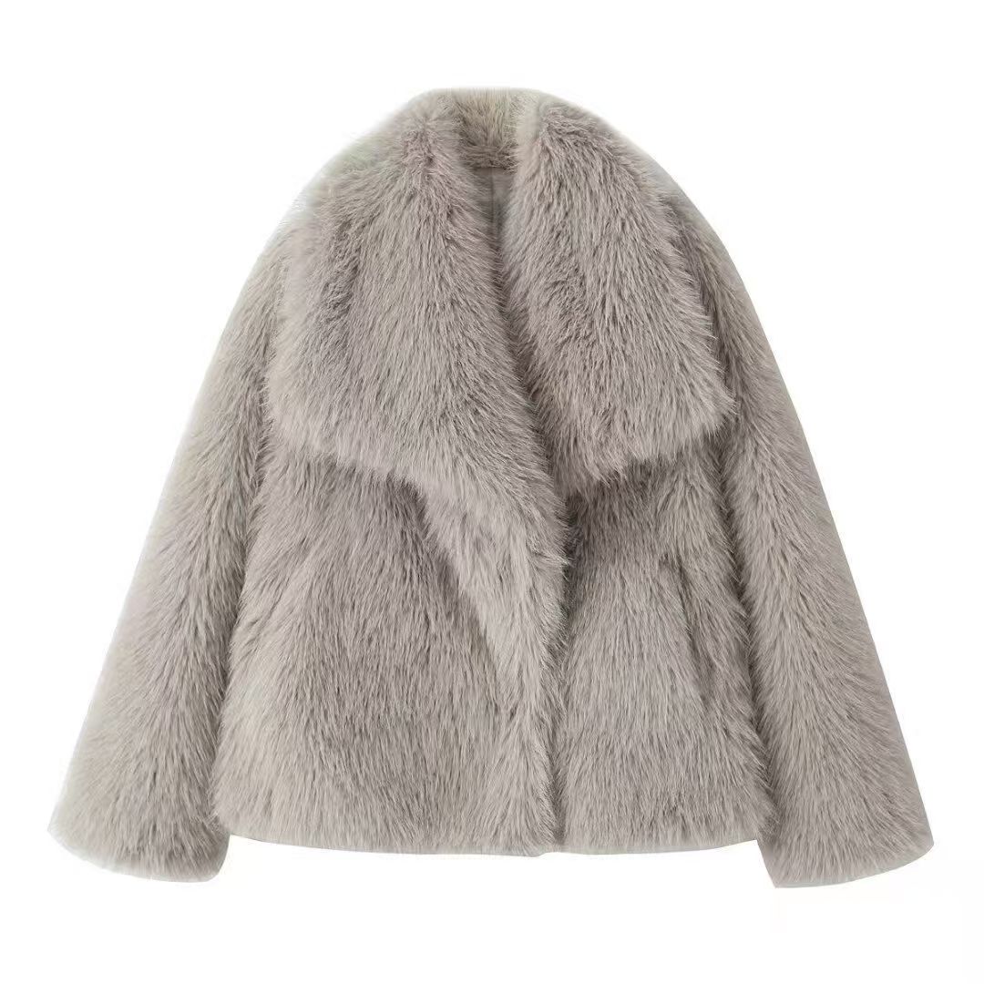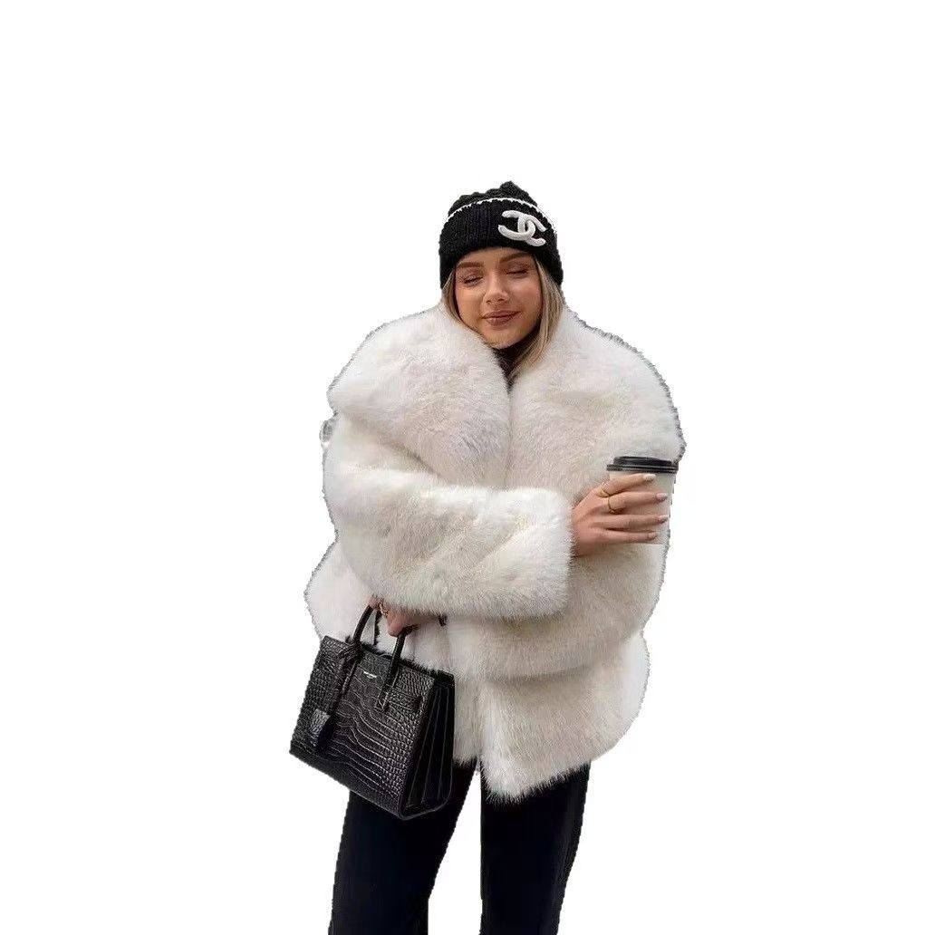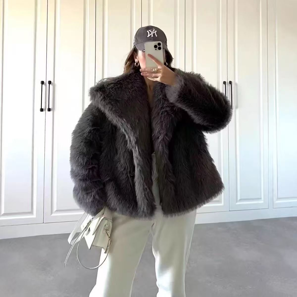YF6392-(10色入内)名媛气质冬装翻领长袖加厚加绒仿皮草狐狸毛轻奢毛毛大衣
