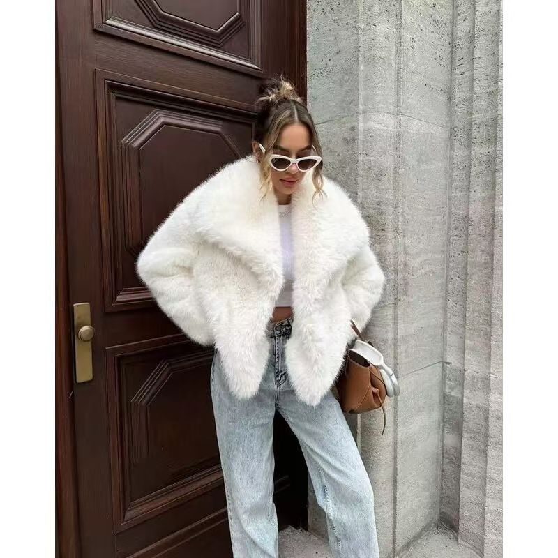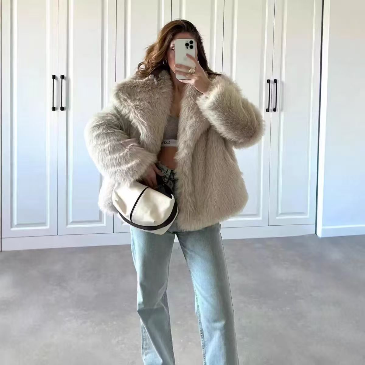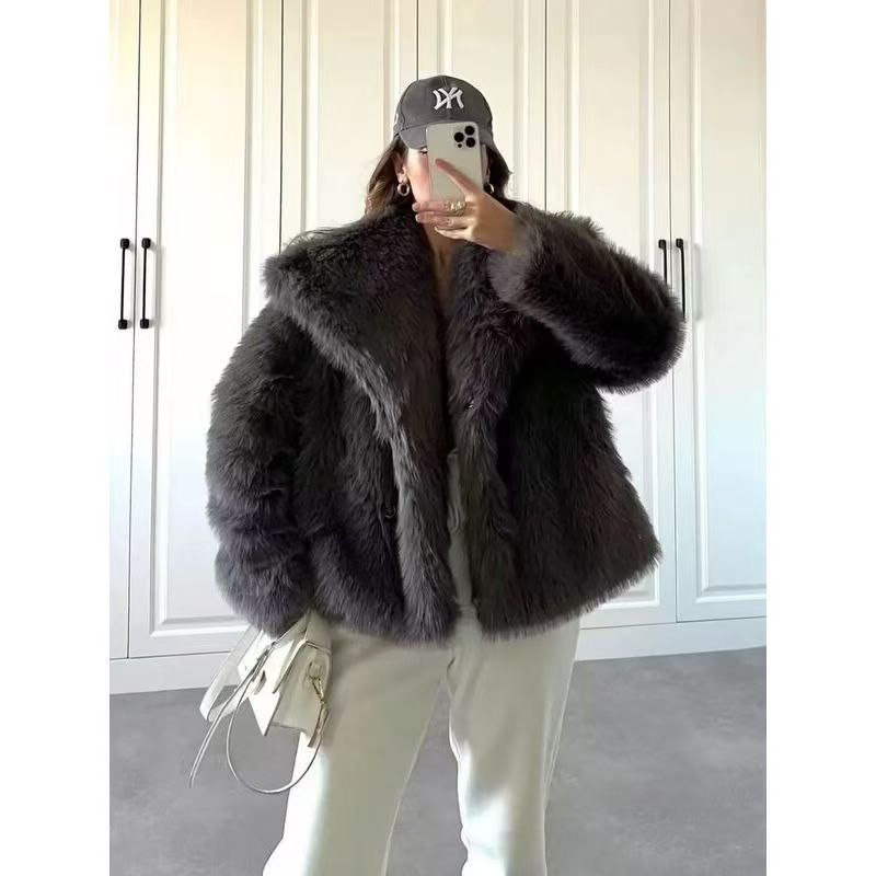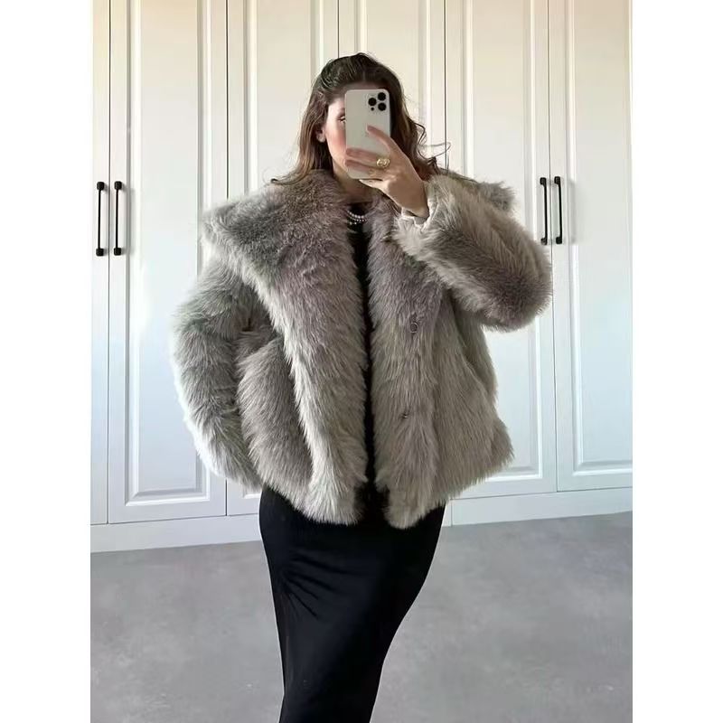 YF6392-(10色入内)名媛气质冬装翻领长袖加厚加绒仿皮草狐狸毛轻奢毛毛大衣