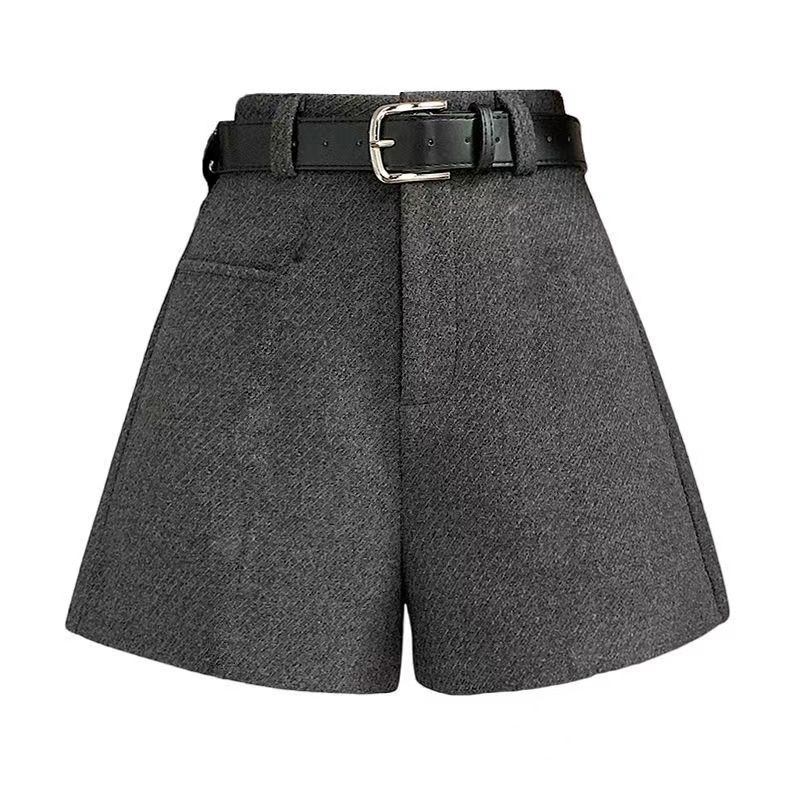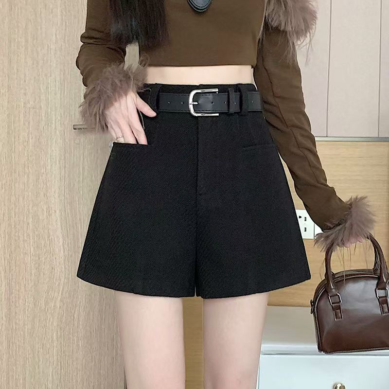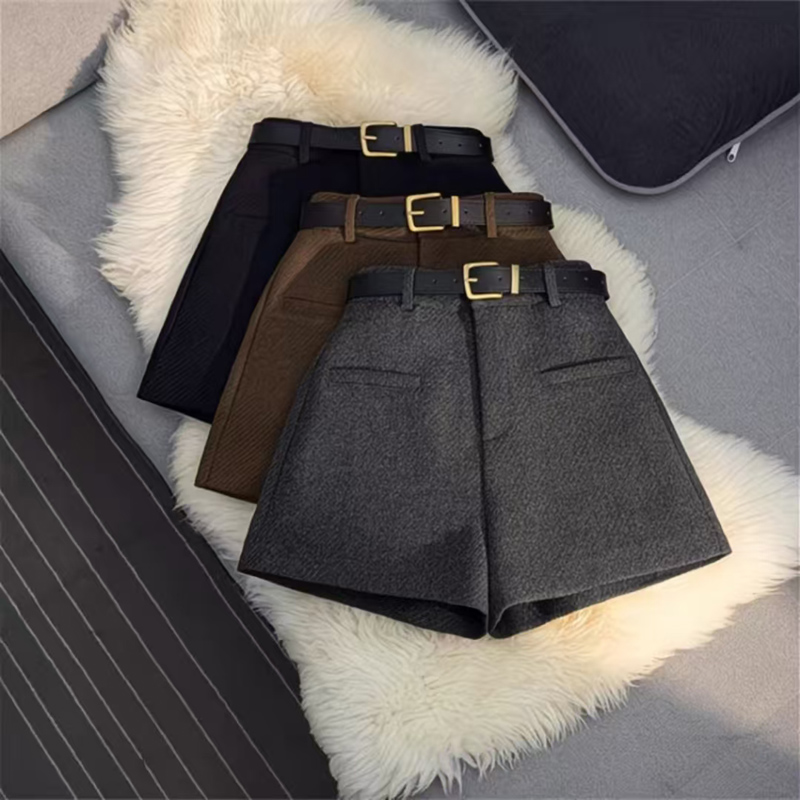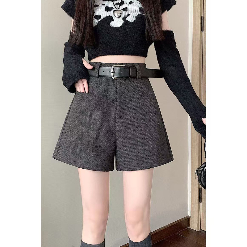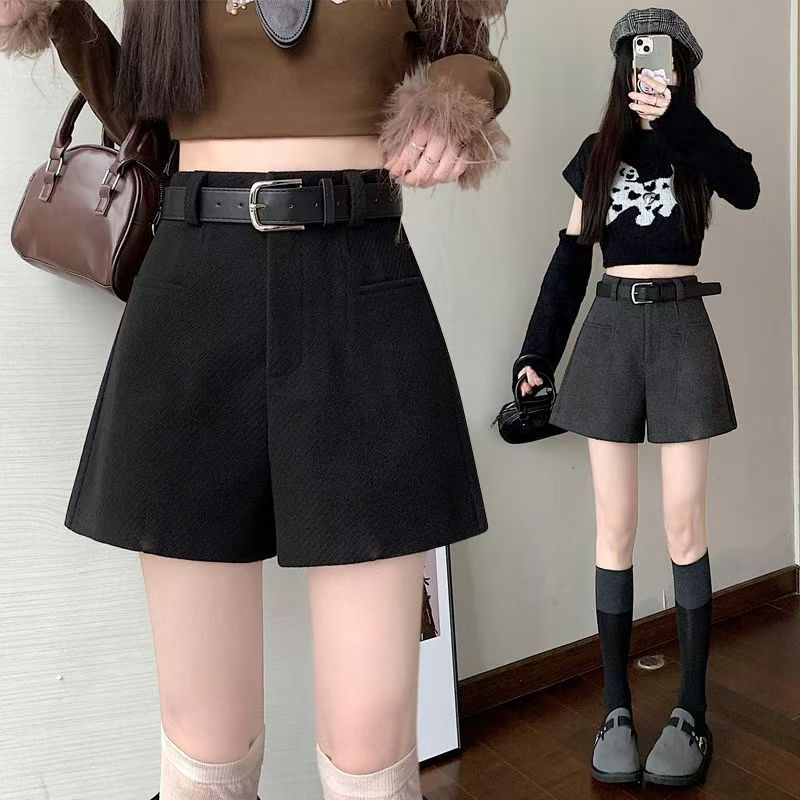 YF6394-(3色入内)冬季2025新款A字阔腿辣妹显高加厚毛呢休闲外穿纯色百搭短裤