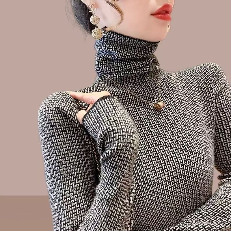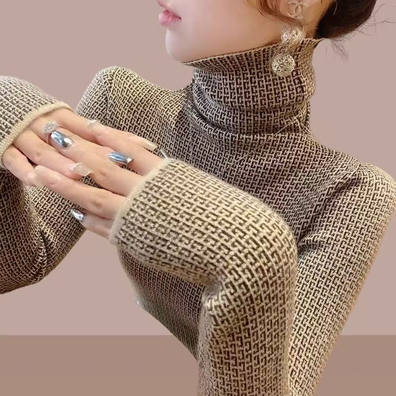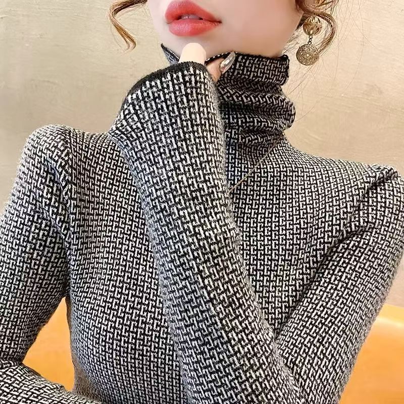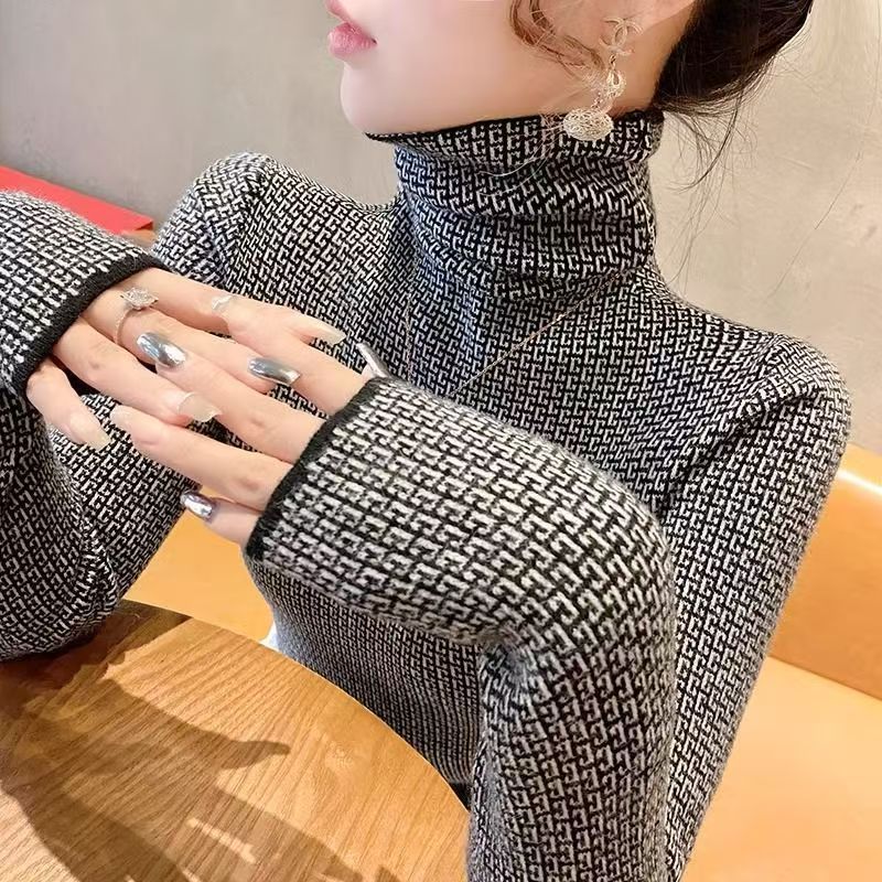 YF6396-(2色入内)韩版长袖高领双面磨毛提花弹力修身加厚高端感冬季针织上衣