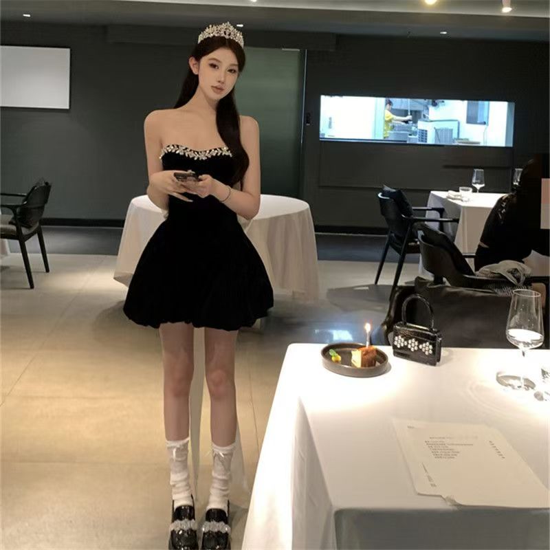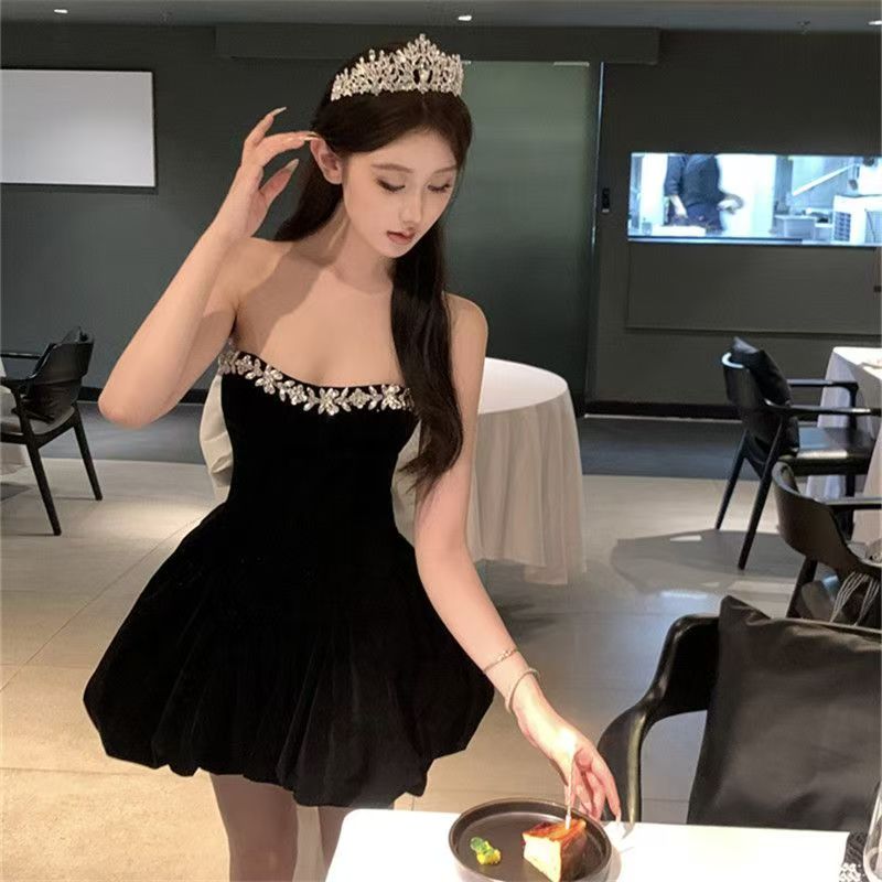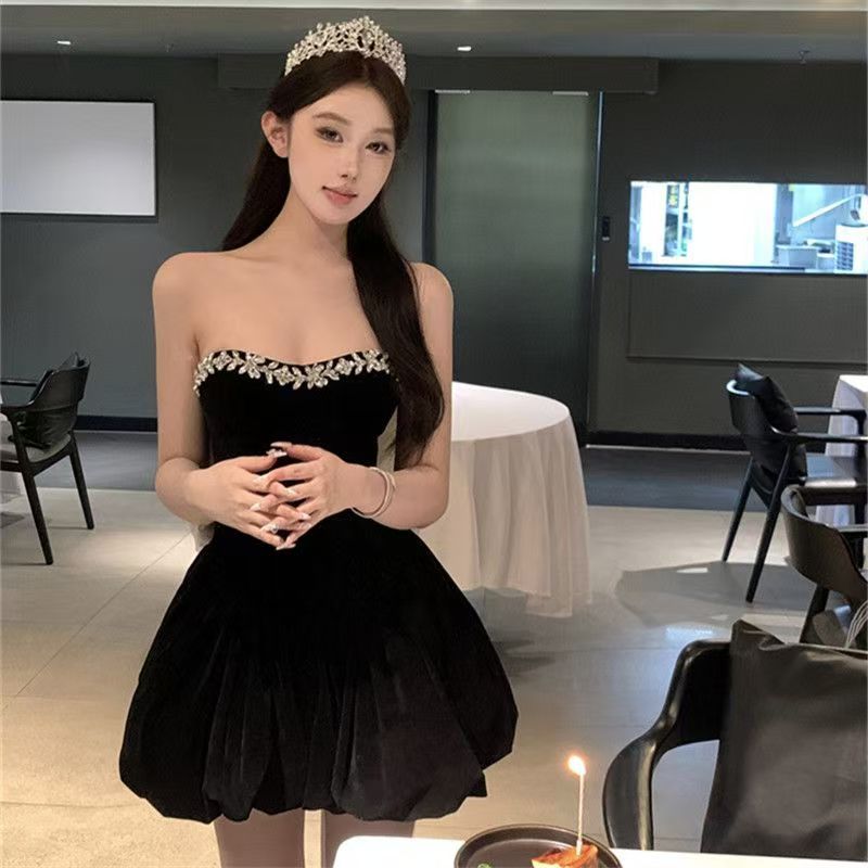 YF6419-图片色名媛风手工钉珠抹胸束腰篷篷蕾丝公主气质宴会礼服 面料 : 蕾丝 弹性:无 拉链:有 内衬:有 口袋:无 其他配饰/附件:无 颜色: 图片色 重量:260g 参考尺寸:S/M/L/XL 其他数据平放测量 S :衣长:76cm 胸围:80cm 肩宽:33cm M :衣长:77cm 胸围:84cm 肩宽:34cm L :衣长:78cm 胸围:88cm 肩宽:35cm XL :衣长:79cm 胸围:92cm 肩宽:36cm 温馨提示: 数据为手工平铺测量 误差正常范围2-3cm