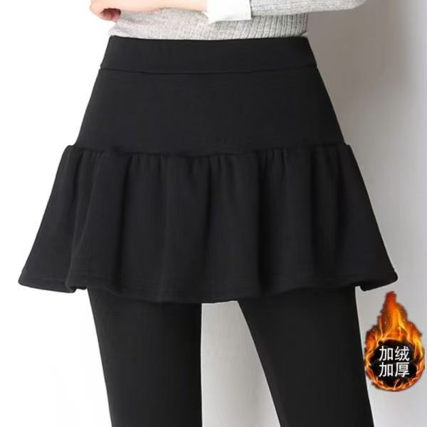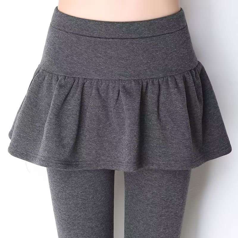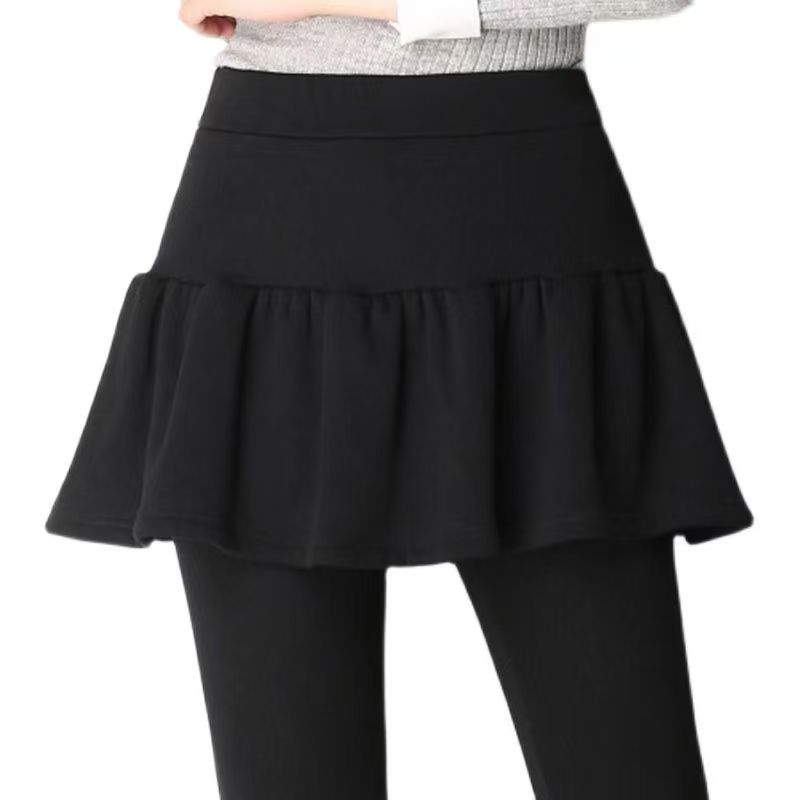 YF6438-(2色入内)秋冬加绒收腹高腰褶折假两件拼接弹力显站纯色百搭打底裤