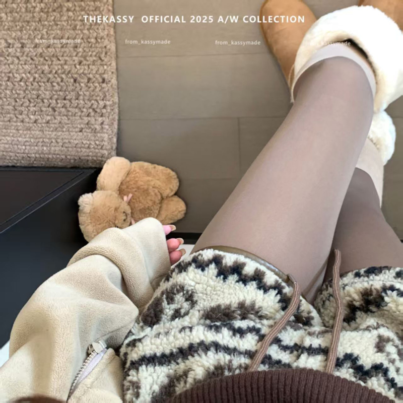 YF6449-(3色入内)冬季辣妹新款加绒不规则提花图腾设计松紧腰抽绳阔腿短裤