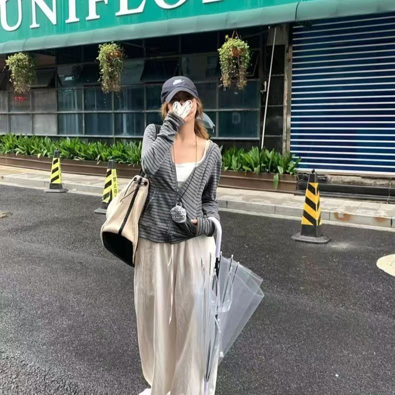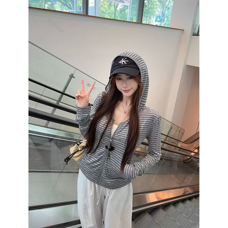 YF6452-(2色入内)学院风韩版长袖连帽拉链条纹显瘦简约百搭秋冬上衣