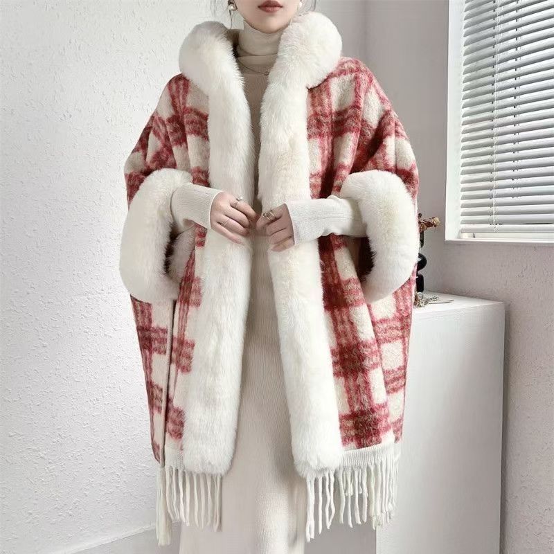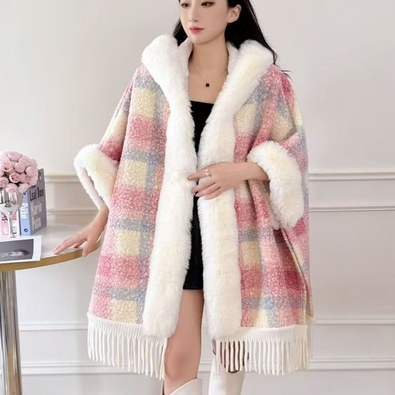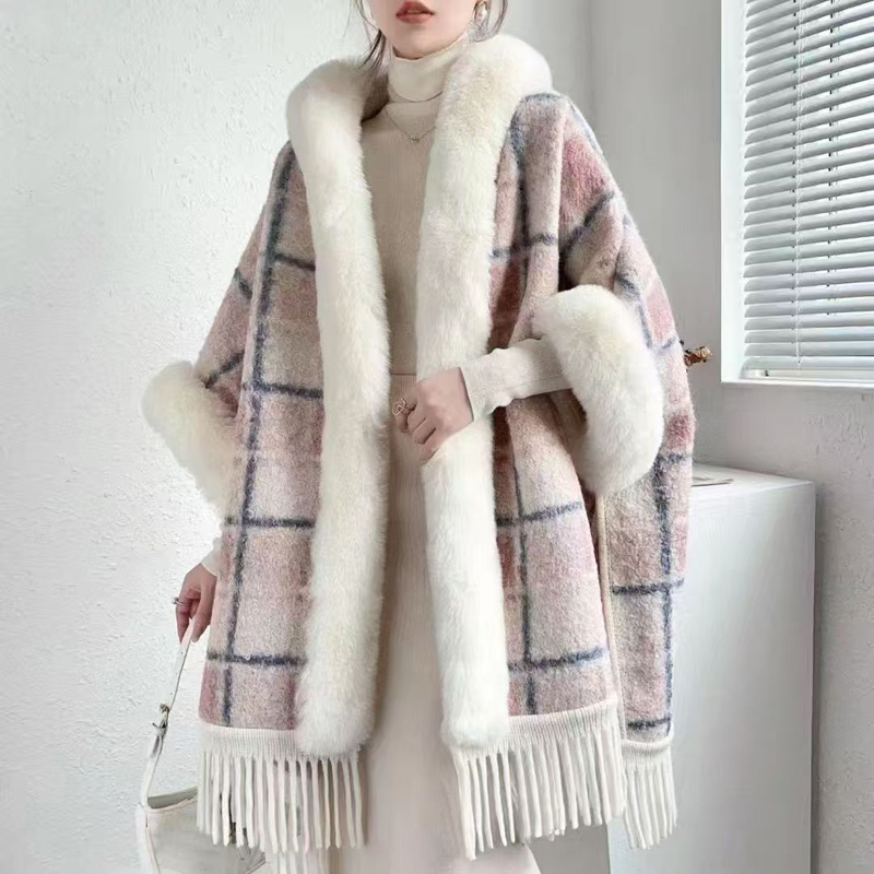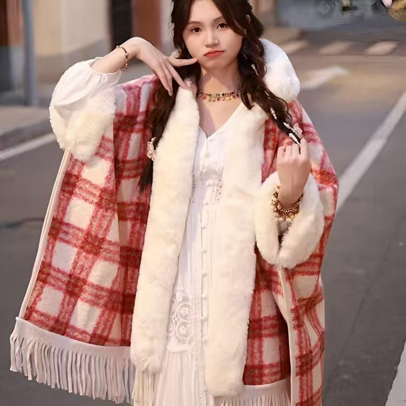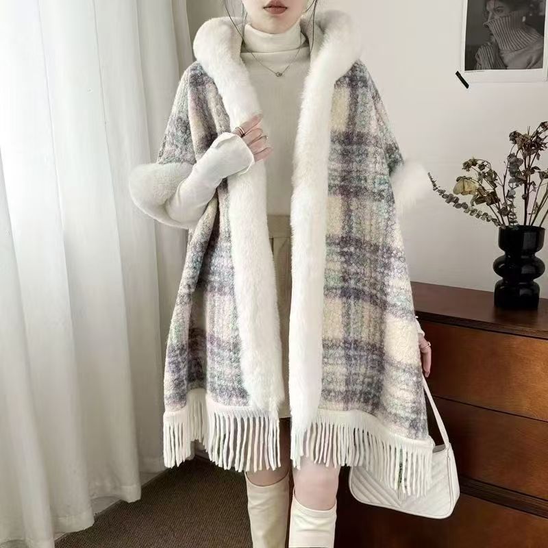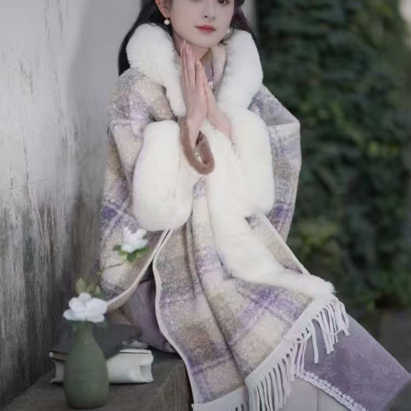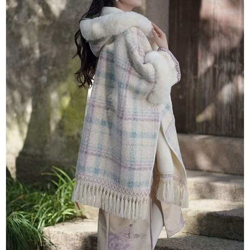 YF6459-(8色入内)名媛气质复古格子加绒中长款绒长袖翻领排扣韩版毛呢大衣