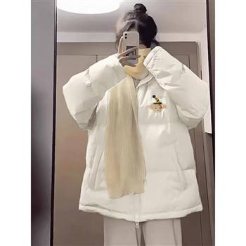 YF6700-(2色入内)小可爱熊熊刺绣长袖立领拉链加绒加厚抽绳束腰防风保暖羽绒服