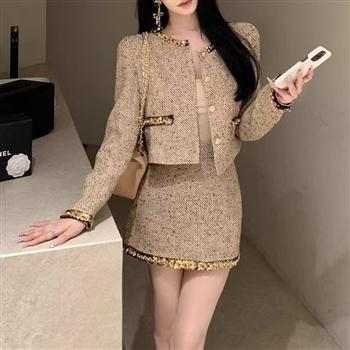 YF6701-图片色小香风粗毛呢高腰A字亮片金边设计防走光高级感半身裙