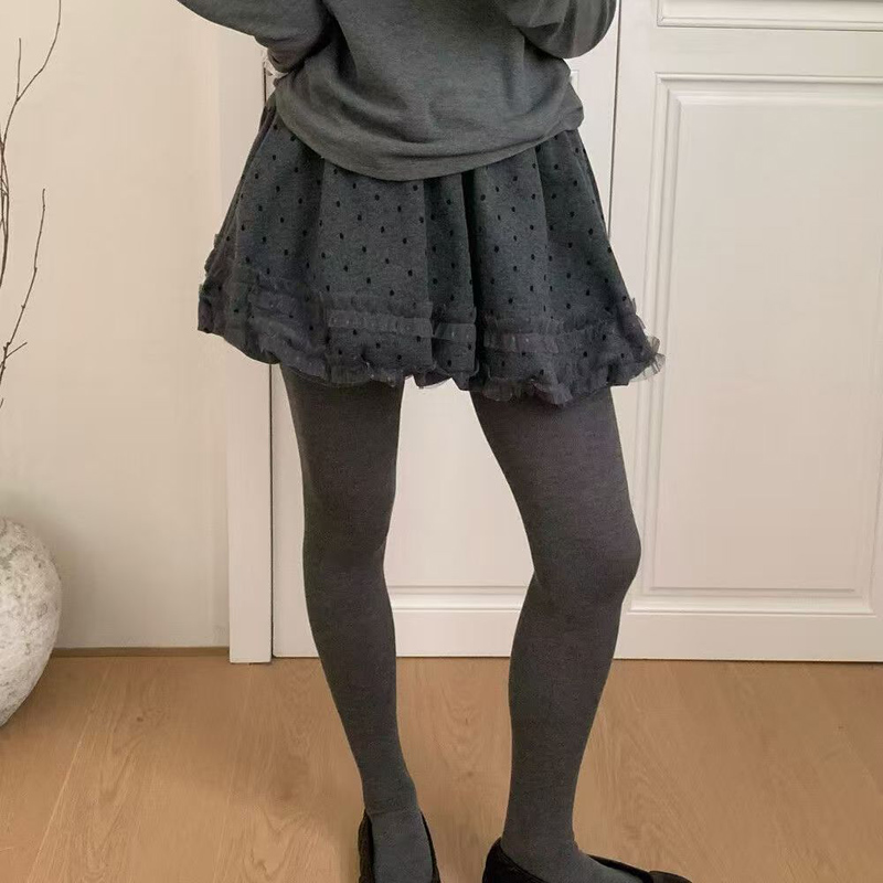 YF6477-(2色入内)辣妹时尚冬季毛呢波点蓬蓬裙 日系加绒蕾丝拼接防走光半身裙