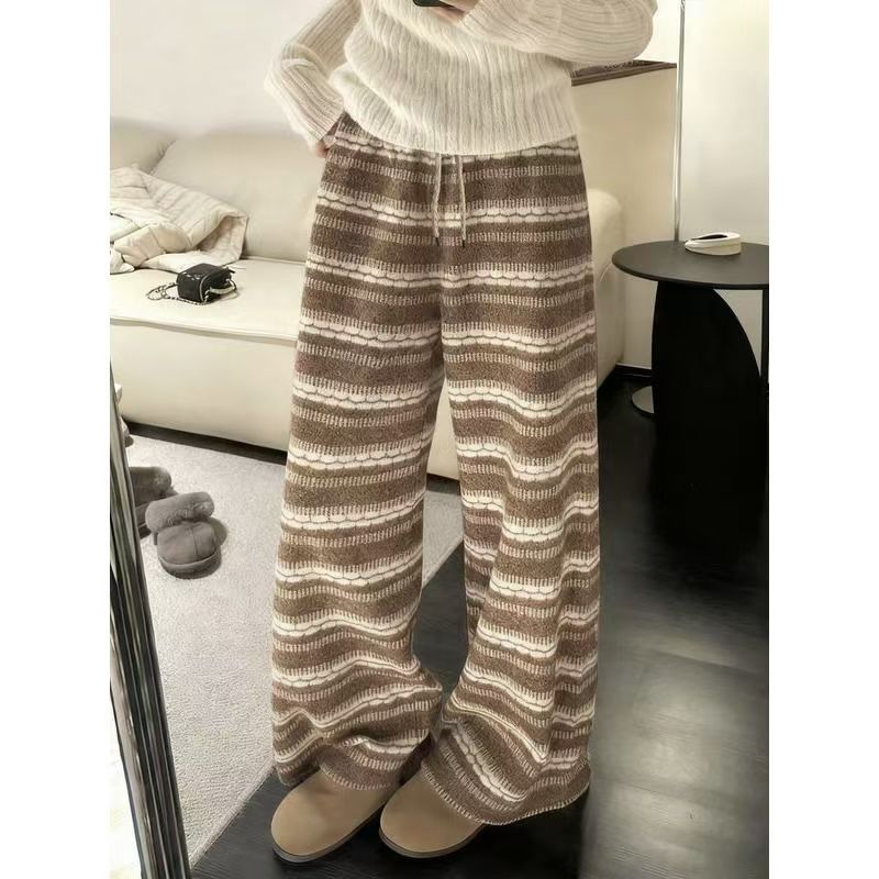 YF6491-(2色入内)秋冬时尚条纹撞紫设计直筒坠地感柔顺望风舒适保暖针织阔腿裤