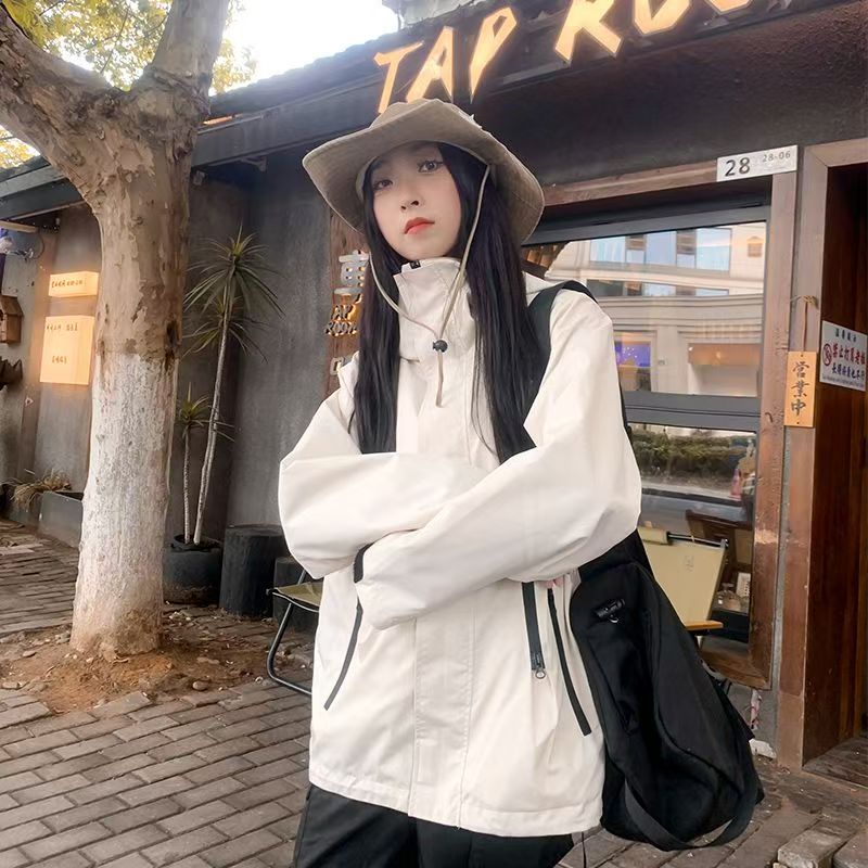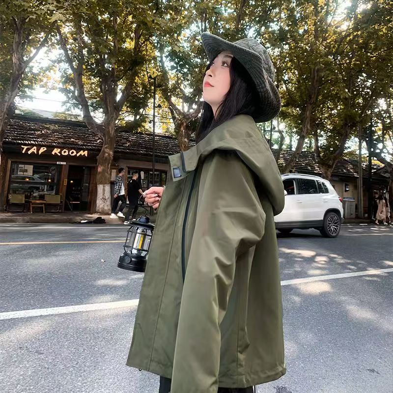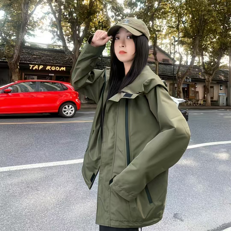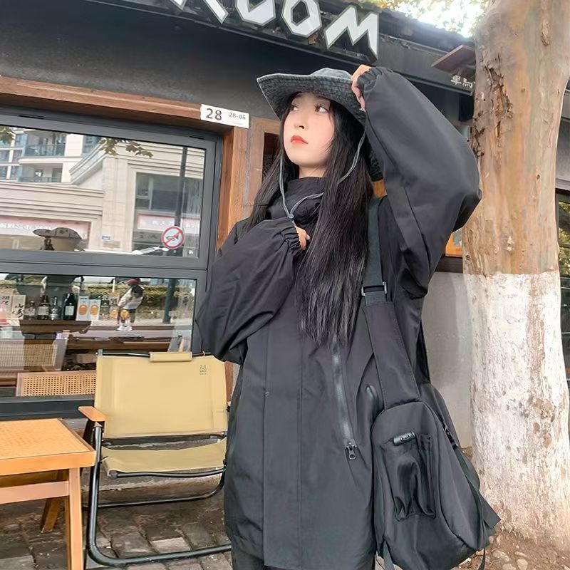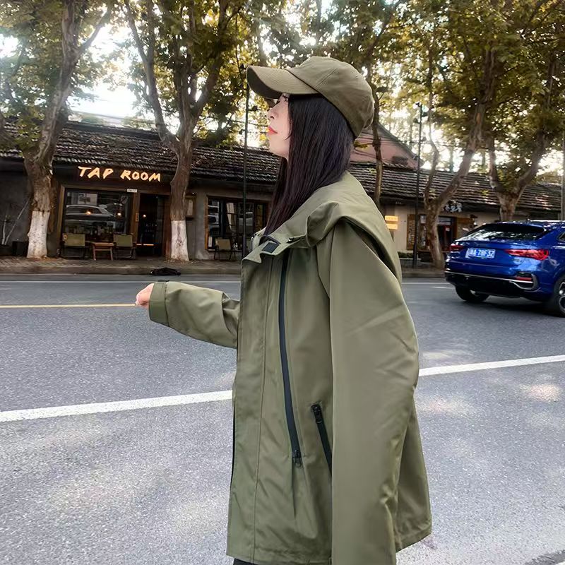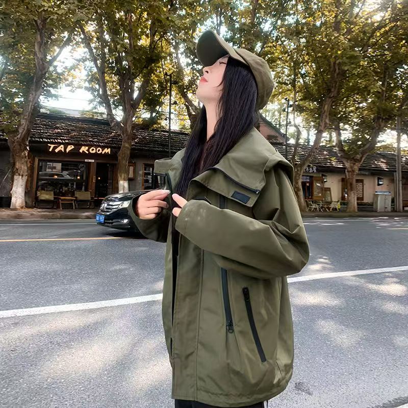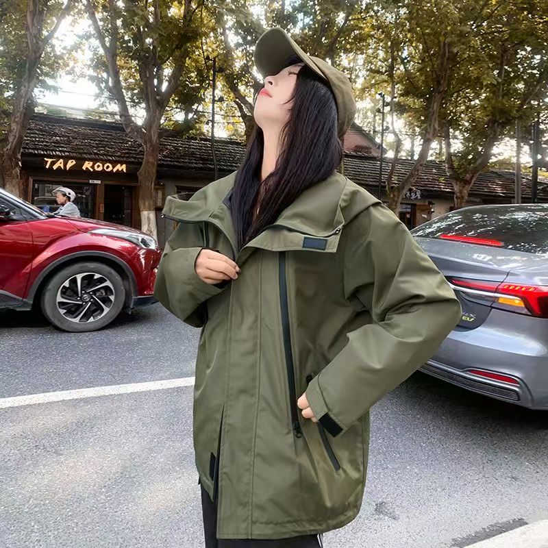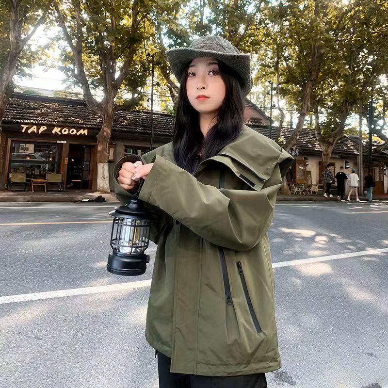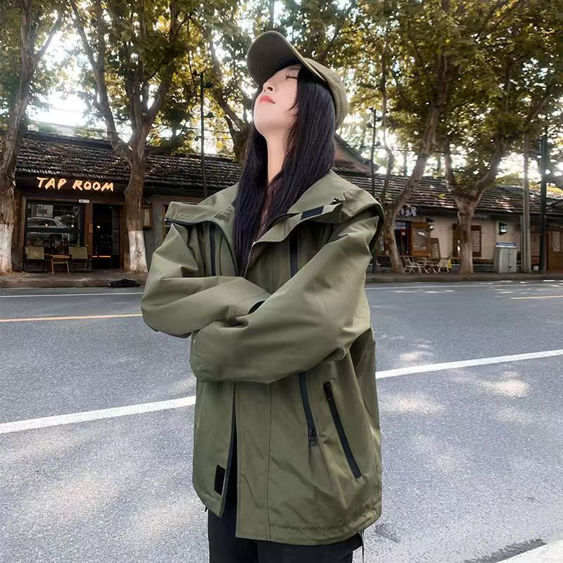 YF6518-(4色入内)秋冬时尚工装设计拉链魔术贴防风宽松大码抽绳新款冲锋衣外套