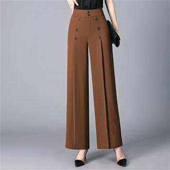 YF6642-(3色入内)韩版时尚新款双排扣个性收腹高腰直筒坠地感阔腿休闲西装裤