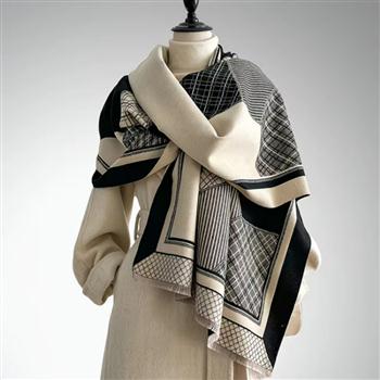 YF6645-(3色入内)时尚名媛风骏马提花羊绒保暖披肩 百搭冬季保暖针织围巾