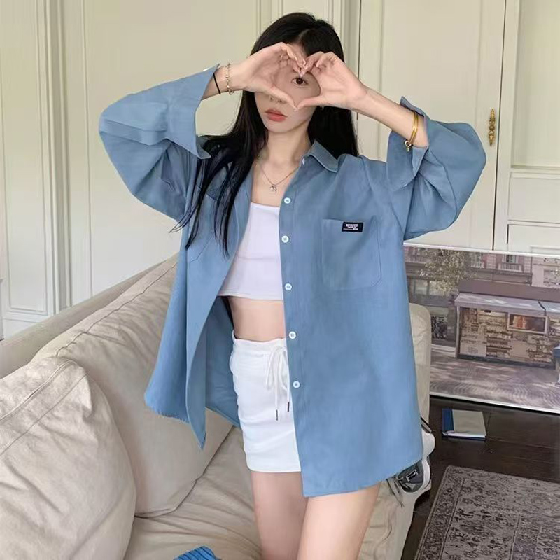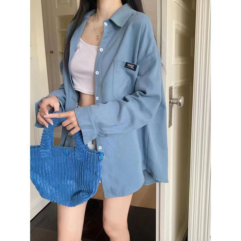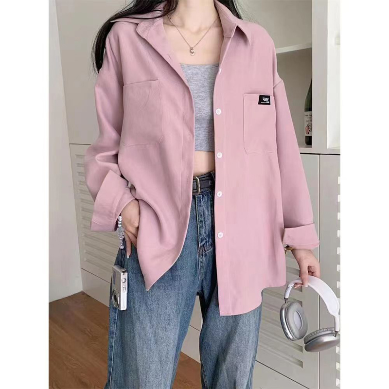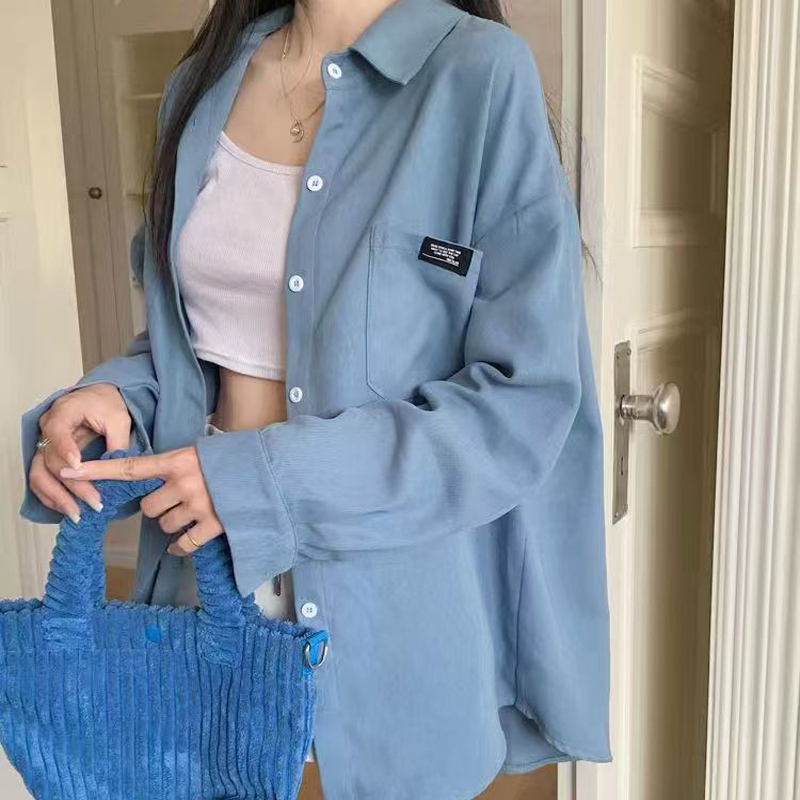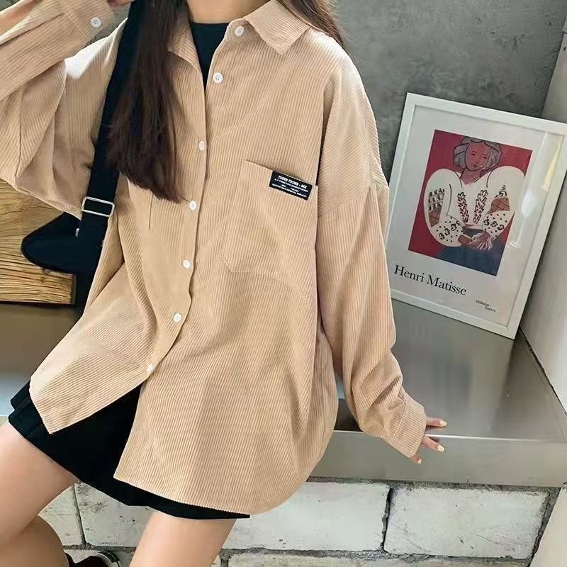YF6650-(3色入内)港式秋冬灯芯绒口袋贴标设计慵懒风长袖翻领系扣胖MM衬衣