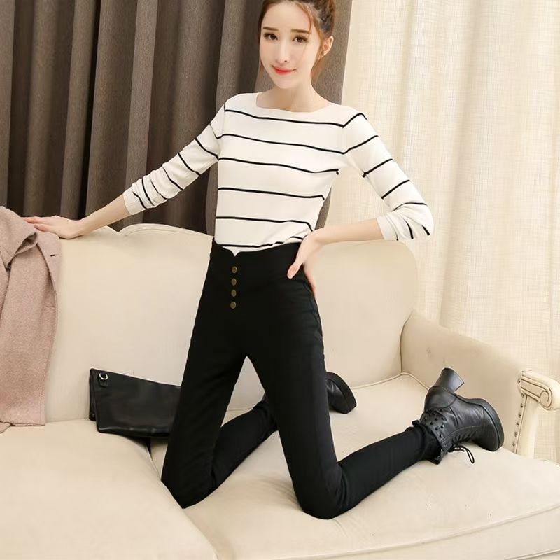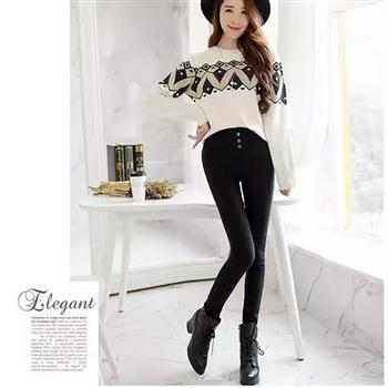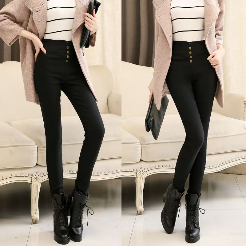 YF6653-图片色秋冬时尚韩版排扣高腰包臀弹力显瘦铅笔裤 纯色百搭紧身牛仔裤