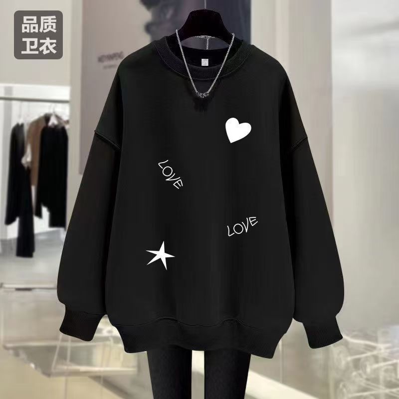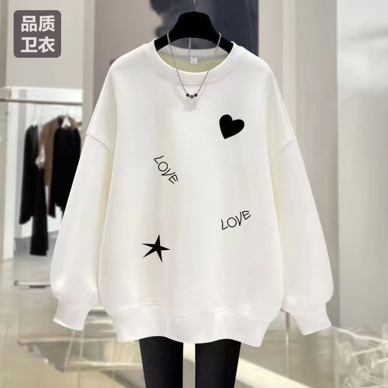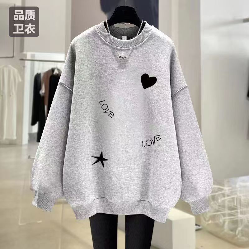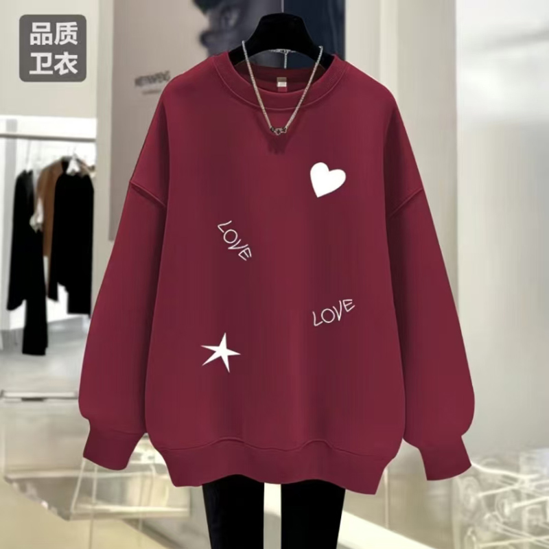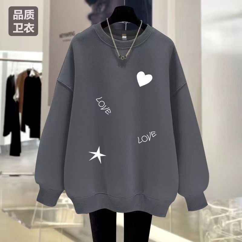 YF6694-(5色入内)春秋休闲港式慵懒风爱心LOVE字母印花简约落肩袖圆领大码卫衣