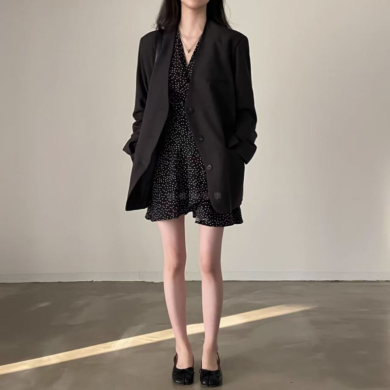 YF6703-图片色复古灯笼袖立领系扣斑点纹印花宽松大码春秋百搭新款上衣
