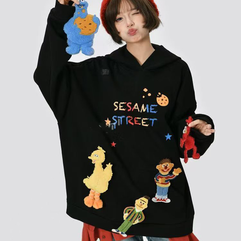 YF6829-(2色入内)韩版嘻哈风街头爆款字母印花可拆公仔多巴胺设计大码卫衣