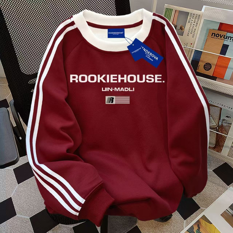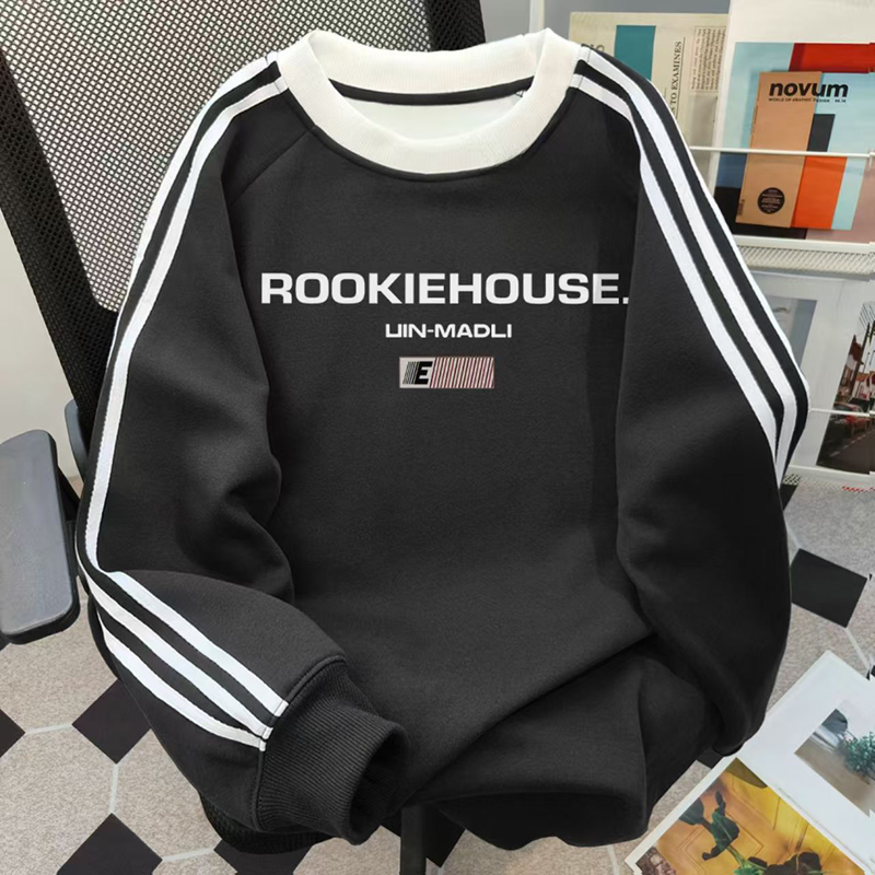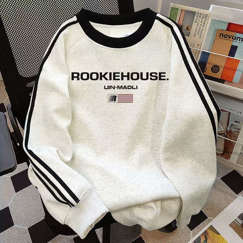YF6873-(3色入内)美式圆领长袖字母印花方格肩连袖设计胖MM显瘦宽松休闲卫衣