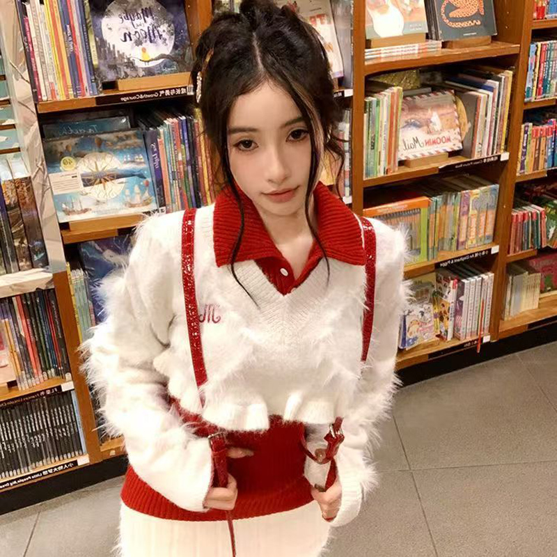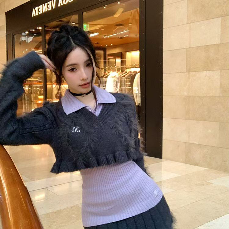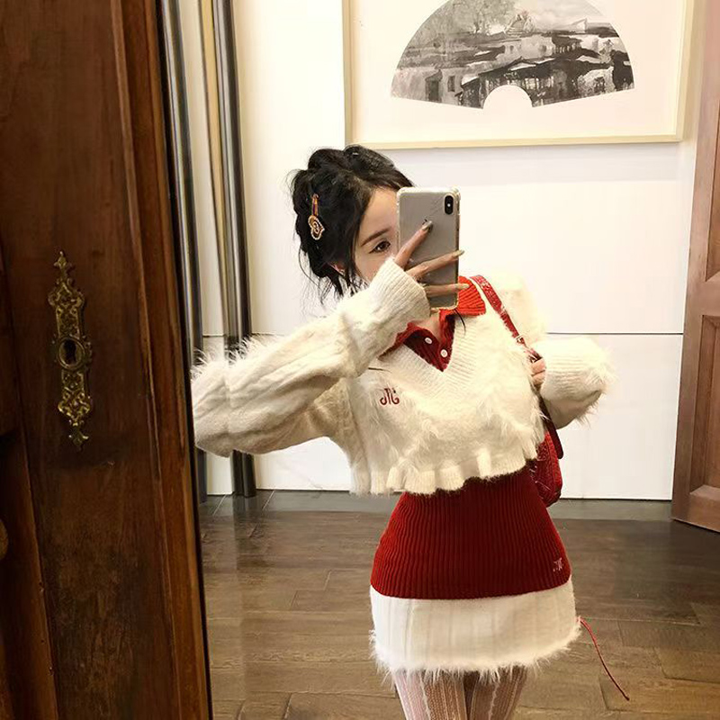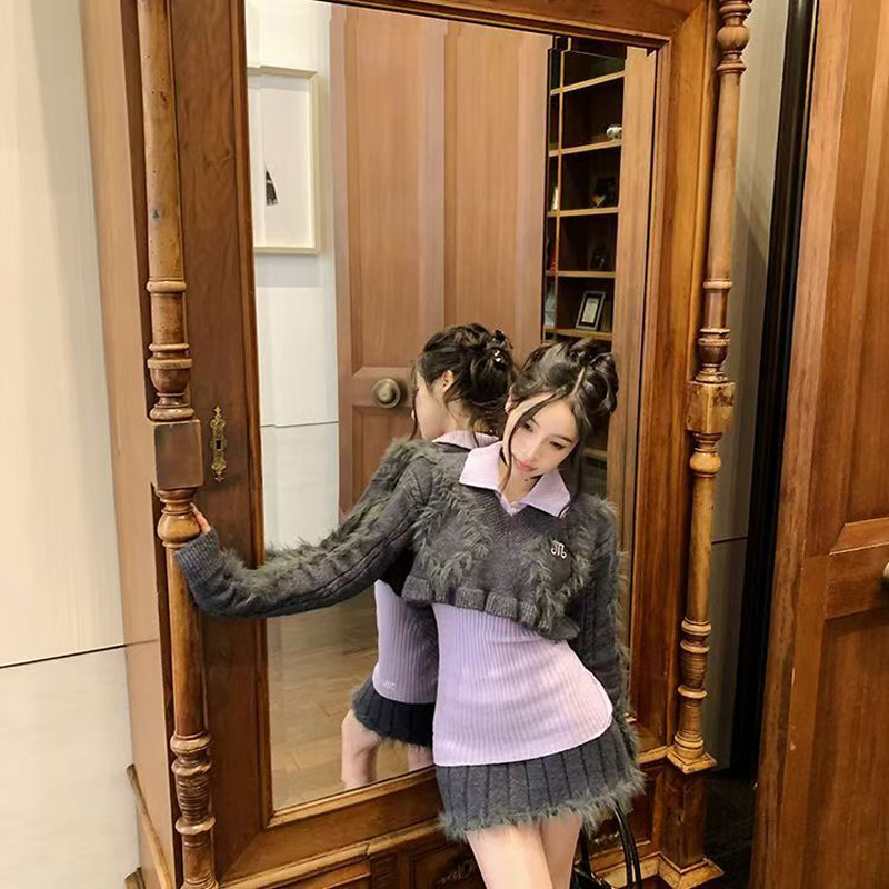YF6970-(2色入内)性感时尚辣妹冬装松紧腰毛边坑条纹A字针织加厚防走光短裙