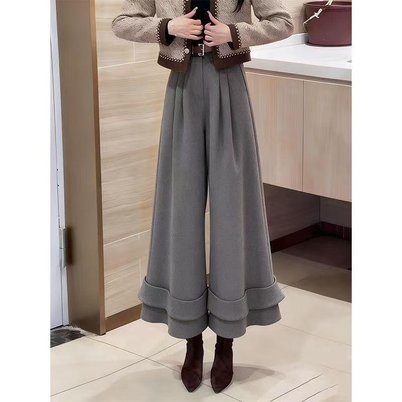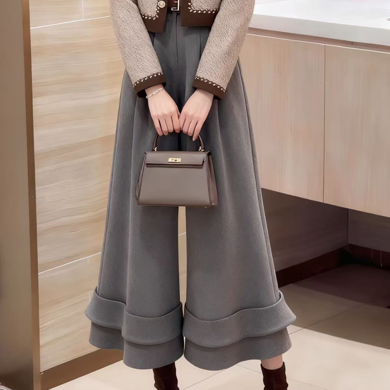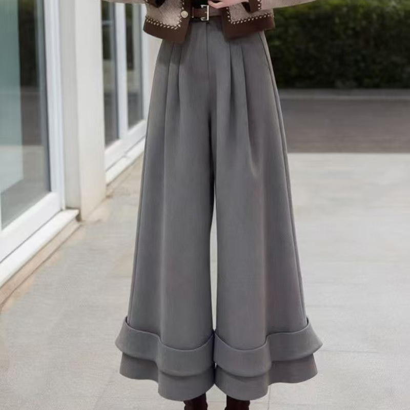 YF7050-图片色早春韩版新款高腰褶折直筒坠地感卷边花苞休闲九分裤