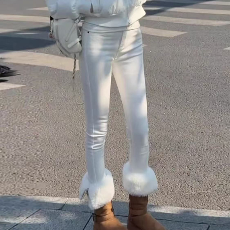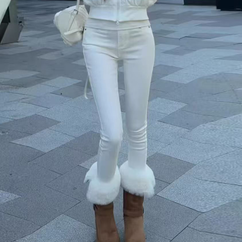 YF7072-图片色白色别致系扣高腰弹力包臀港式小脚显瘦紧身百搭牛仔裤