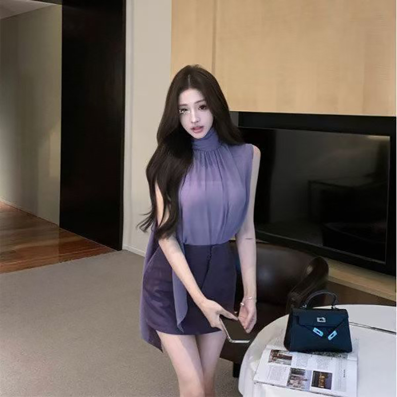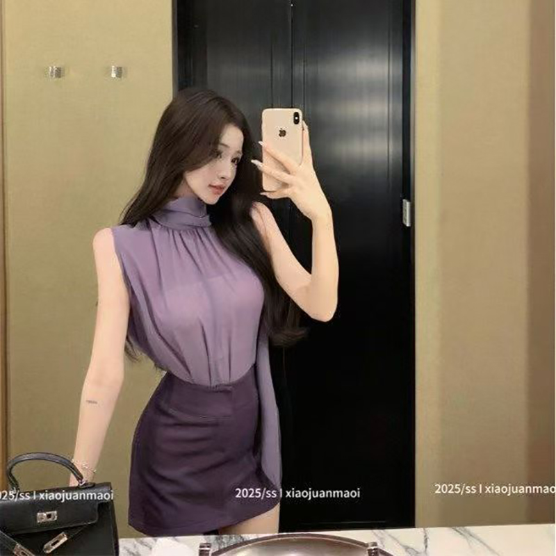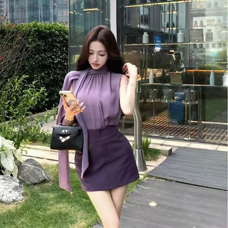 YF7120-图片色多巴胺时尚紫色高腰暗拉链设计A字包臀紧身防走光高级感短裙