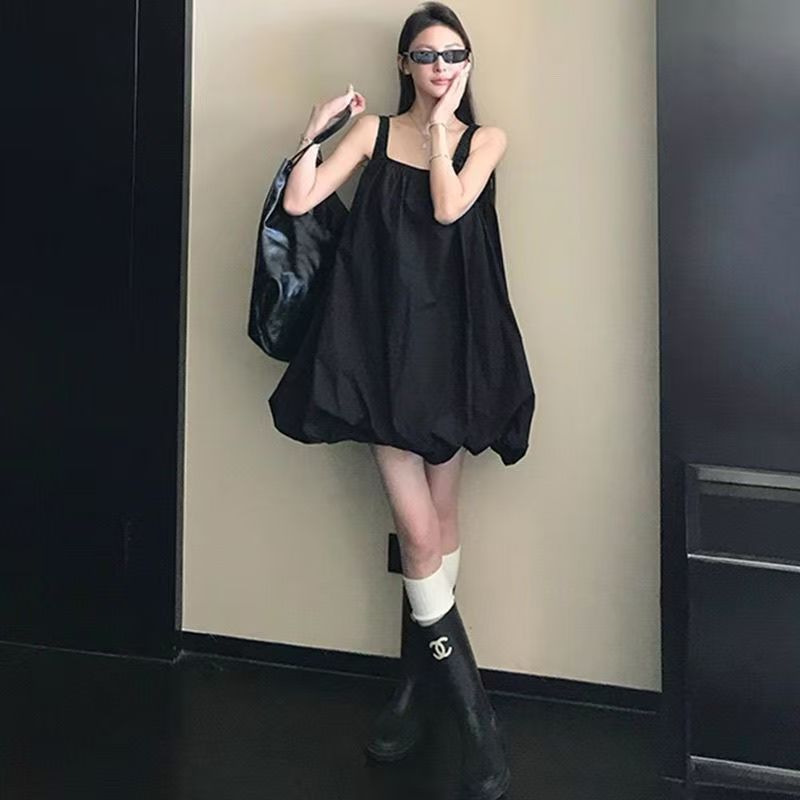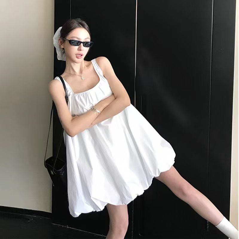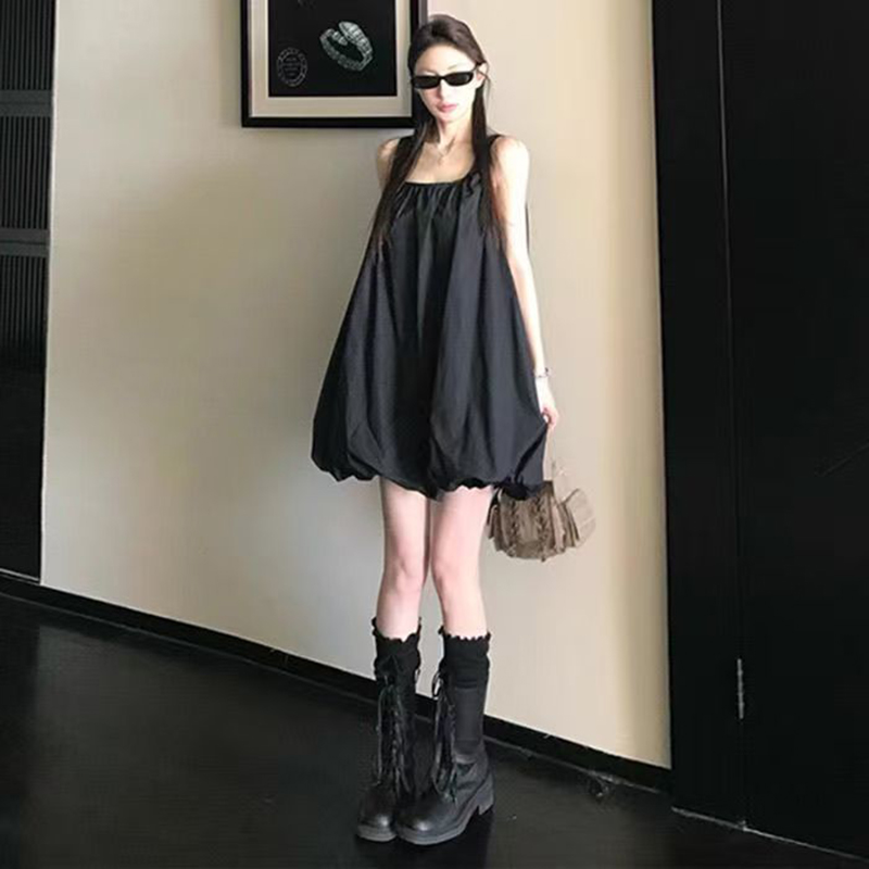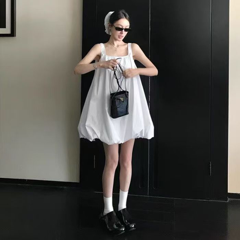 YF7146-(2色入内)韩版时尚夏季新款吊带A字褶折纯色显瘦性感辣妹灯笼裙子