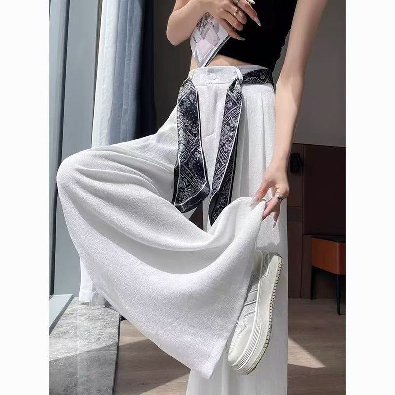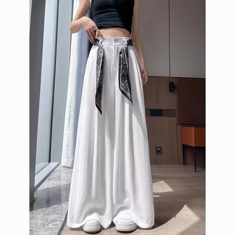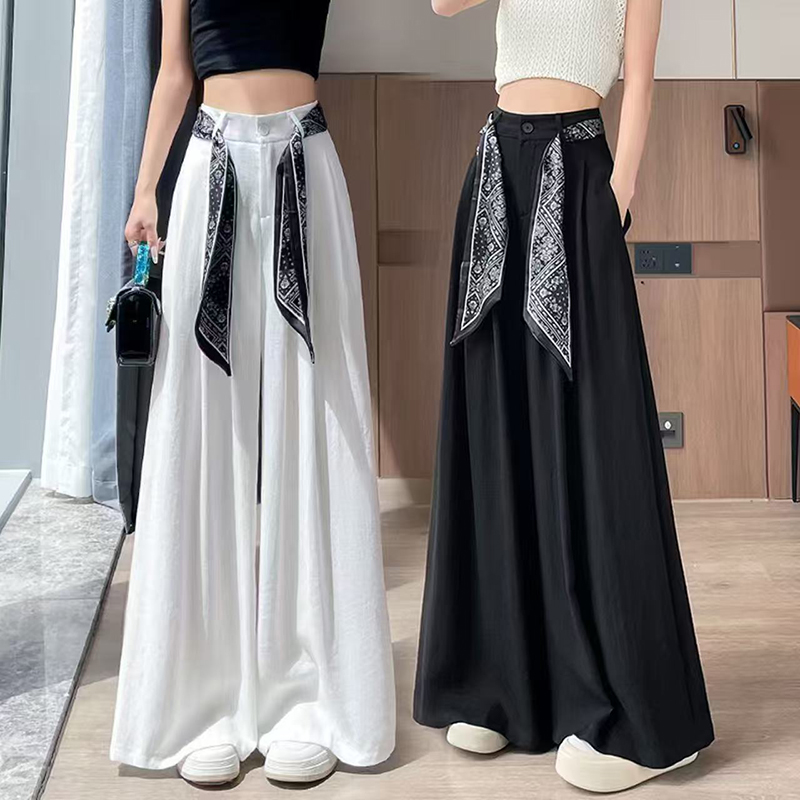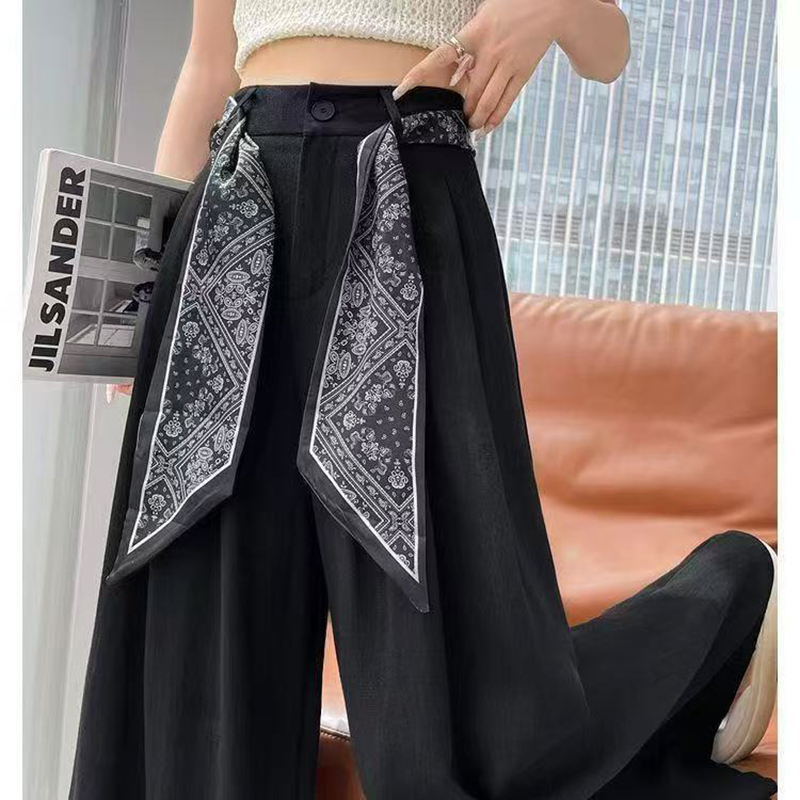 YF7154-(2色入内)韩版新款洋气个性印花飘带系腰直筒坠地感阔腿休闲西装长裤