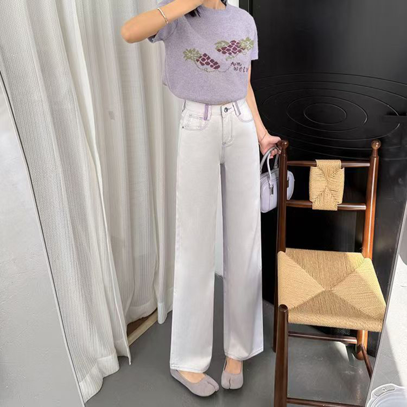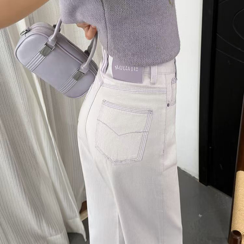 YF7191-图片色早春新款撞色系扣小众设计直筒坠地感辣妹潮牌牛仔裤