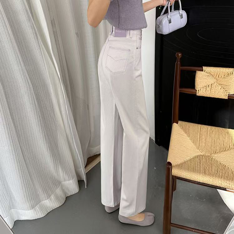 YF7188-图片色韩版个性设计碎花系扣高腰直筒坠地感提花复古牛仔裤