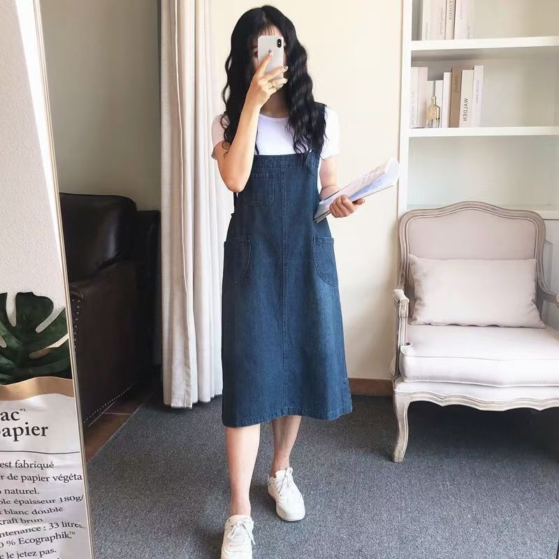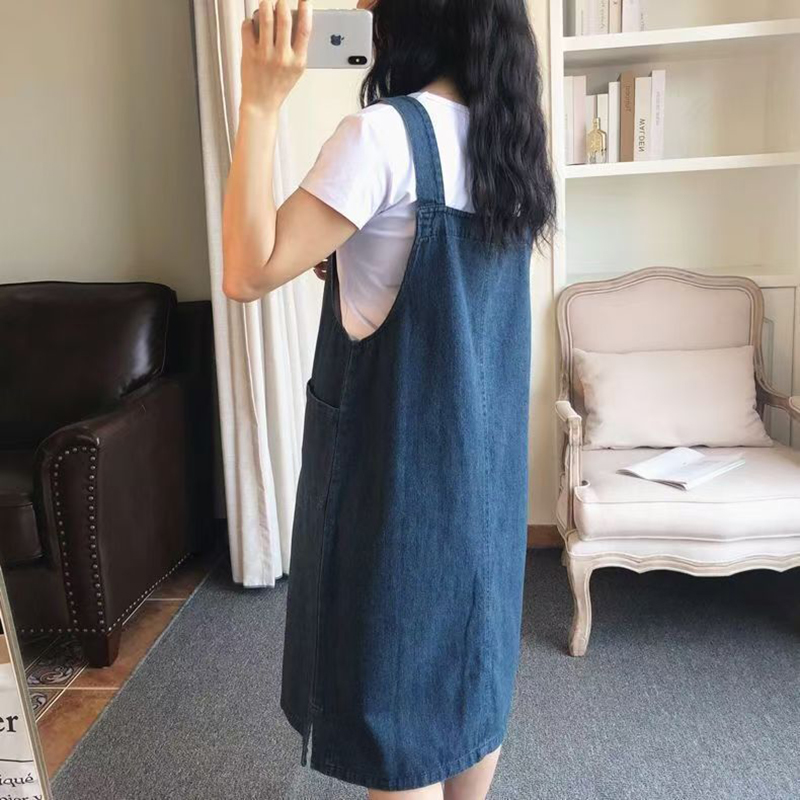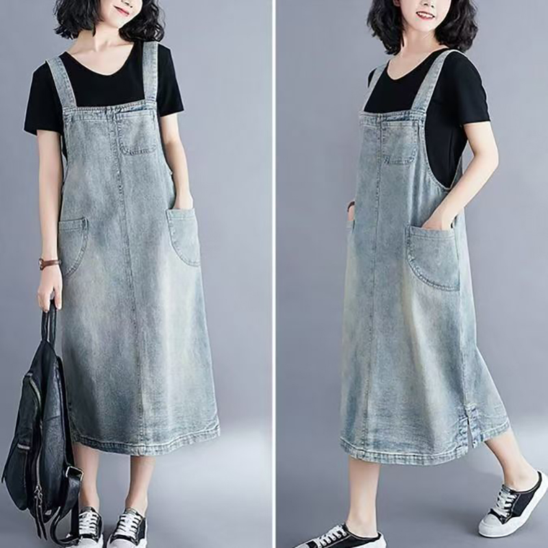 YF7208-(2色入内)夏季韩版吊带抹胸多口袋设计复古气质显瘦大码背带牛仔裙