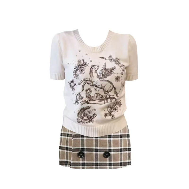 YF7225--图片色学院风复古格子夏天短袖POLO领修身显瘦chic气质上衣