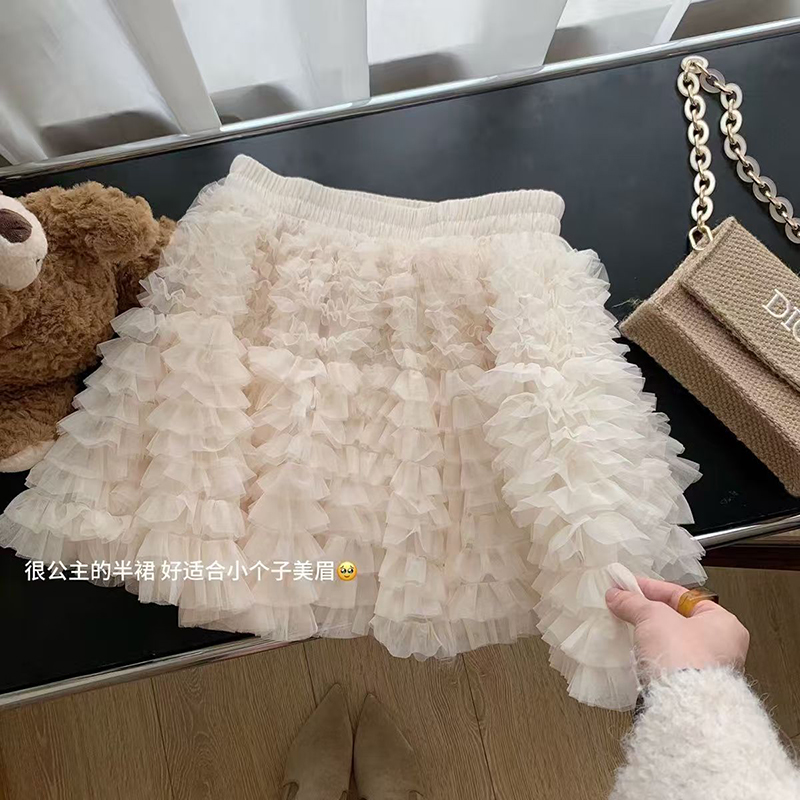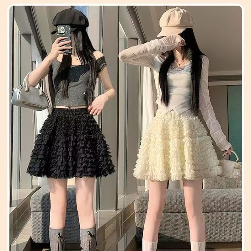 YF7237-(2色入内)小可爱夏季松紧腰蕾丝蓬蓬公主短裙 时尚网纱防走光内搭A字半身裙