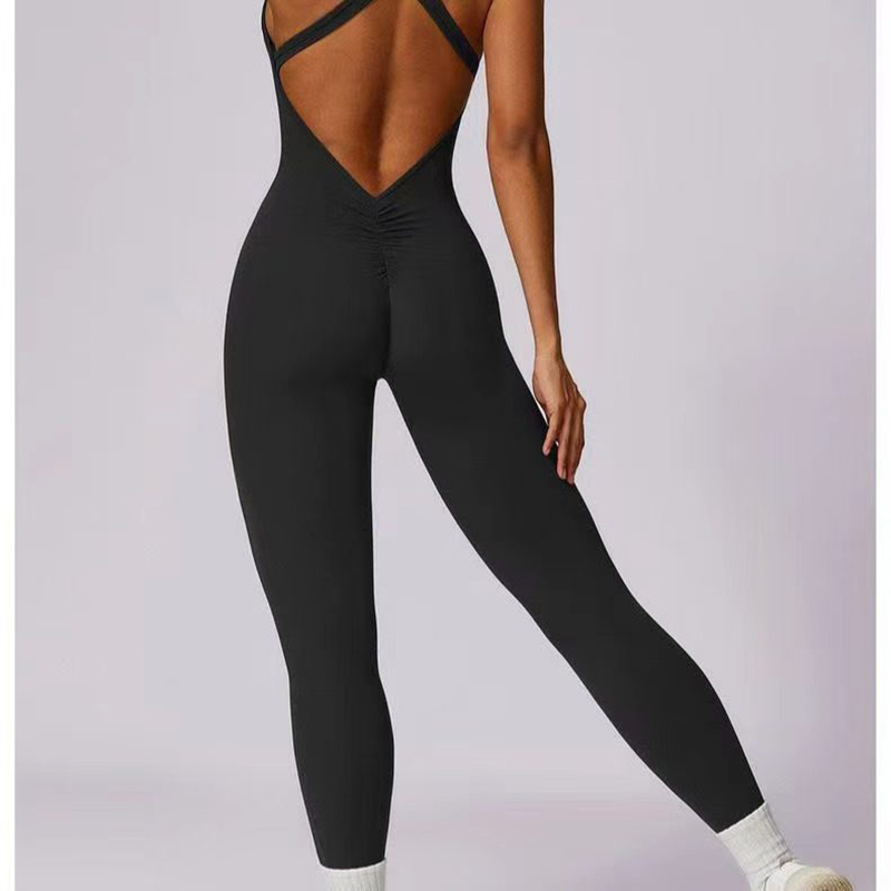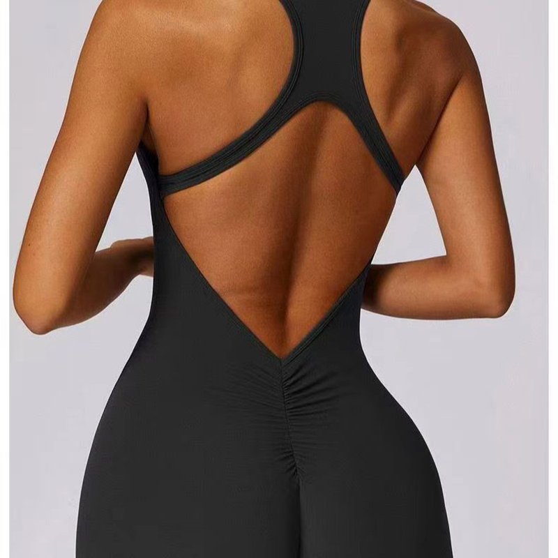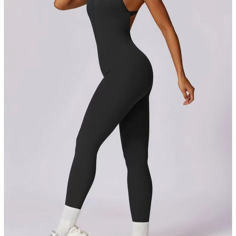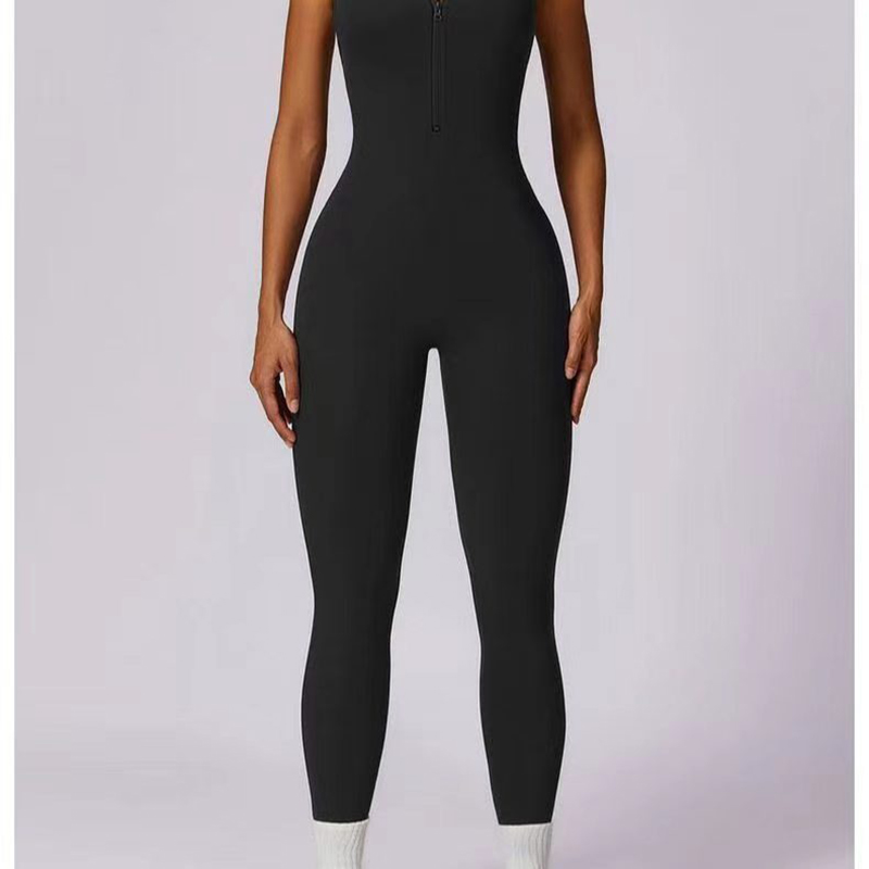 YF7270-图片色性感时尚后背工装露背前拉链设计运动健身弹力紧身连体服