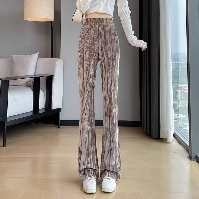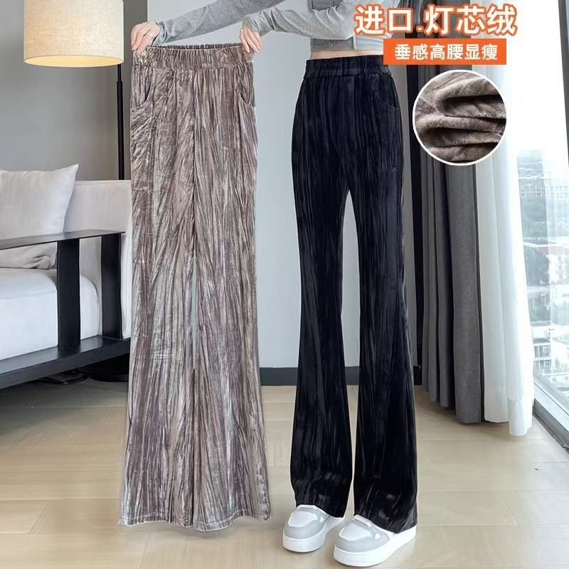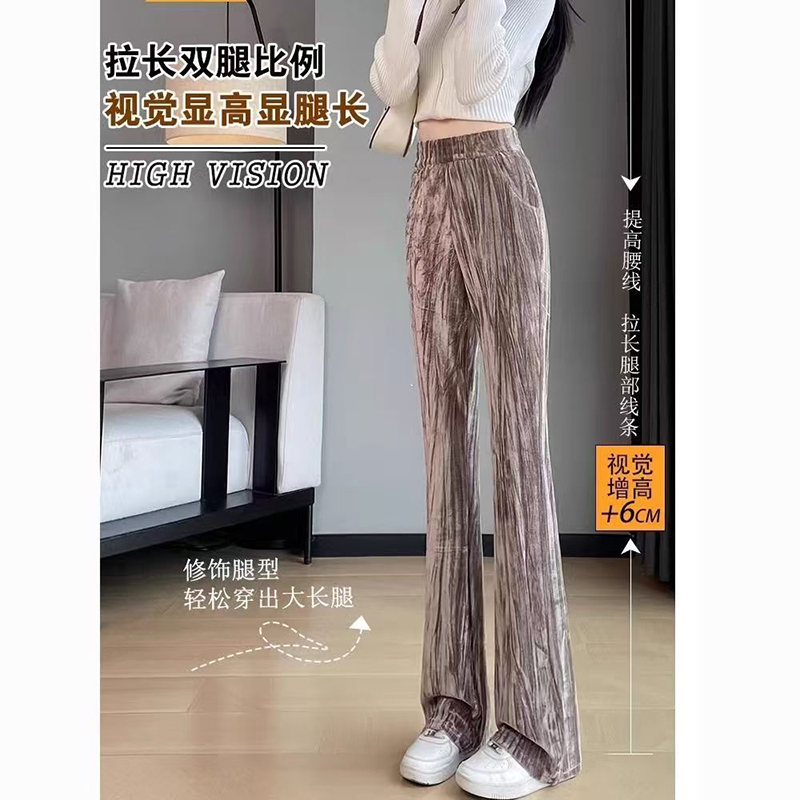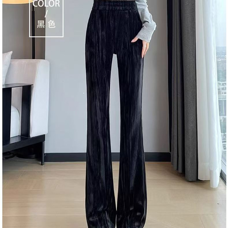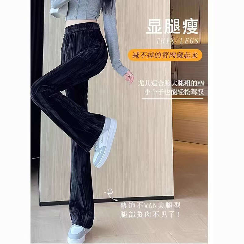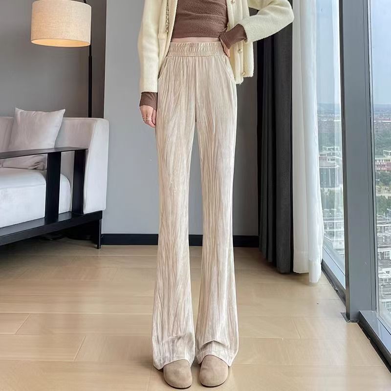 YF7278-(3色入内)慵懒风韩版新款松紧腰直筒坠地感暗条纹运动休闲百搭西装裤