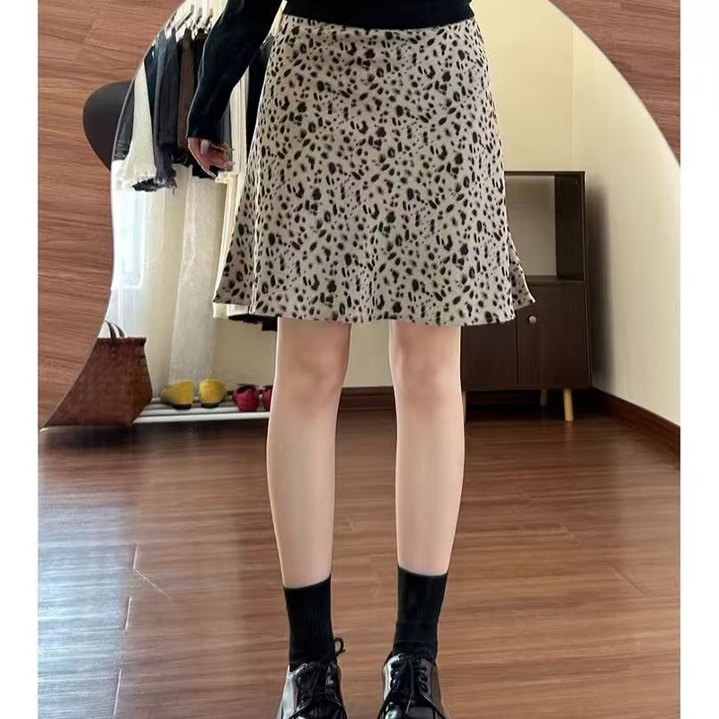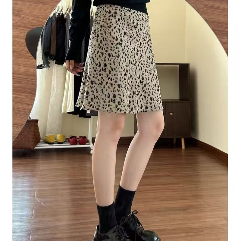 YF7455-图片色复古豹纹印花A字防走光内衬高腰显瘦夏装新款短裙