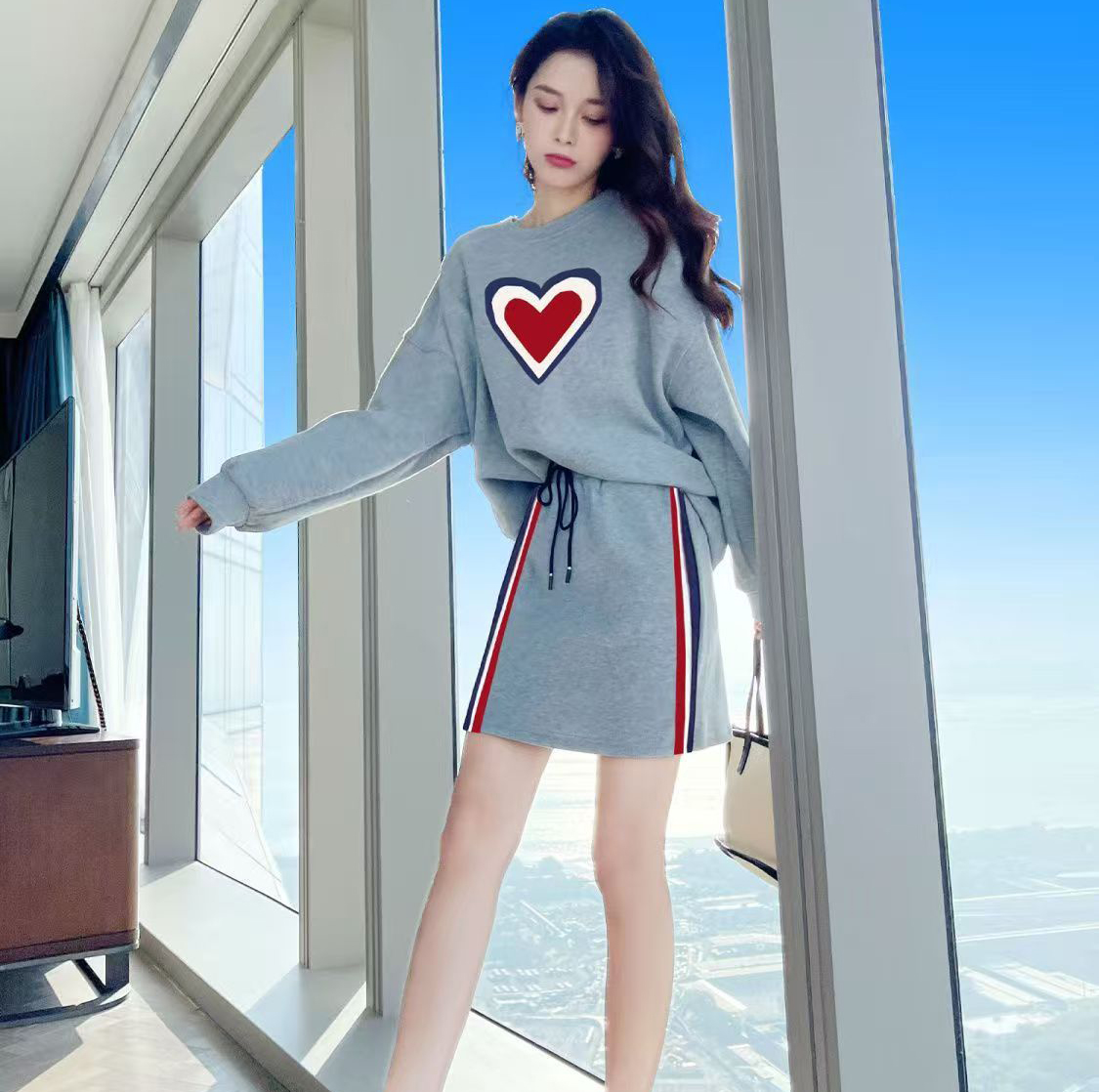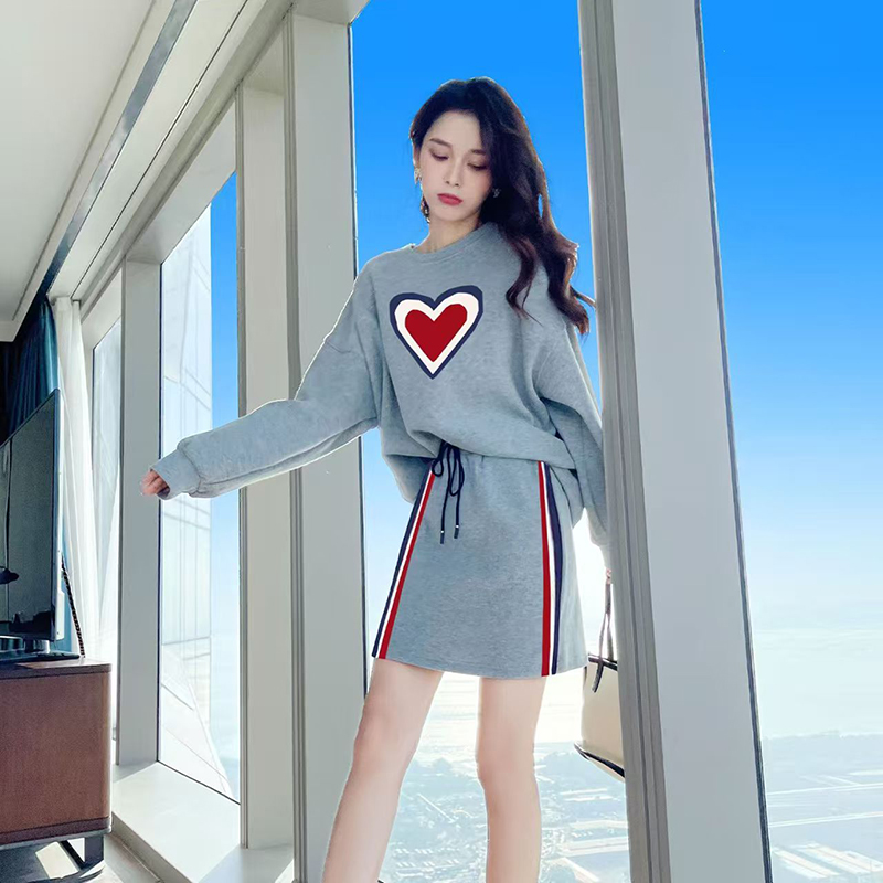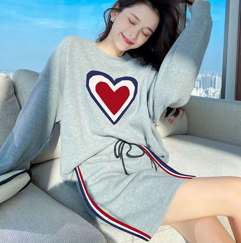 YF7499-ͼƬɫѧԺ·çÔ²ÁìÌ×Í·°®ÐÄÓ¡»¨¿íËÉ´óÂëÉÏÒÂËɽôÑüϵÉþA×Öȹ¸ÛʽÌ××°