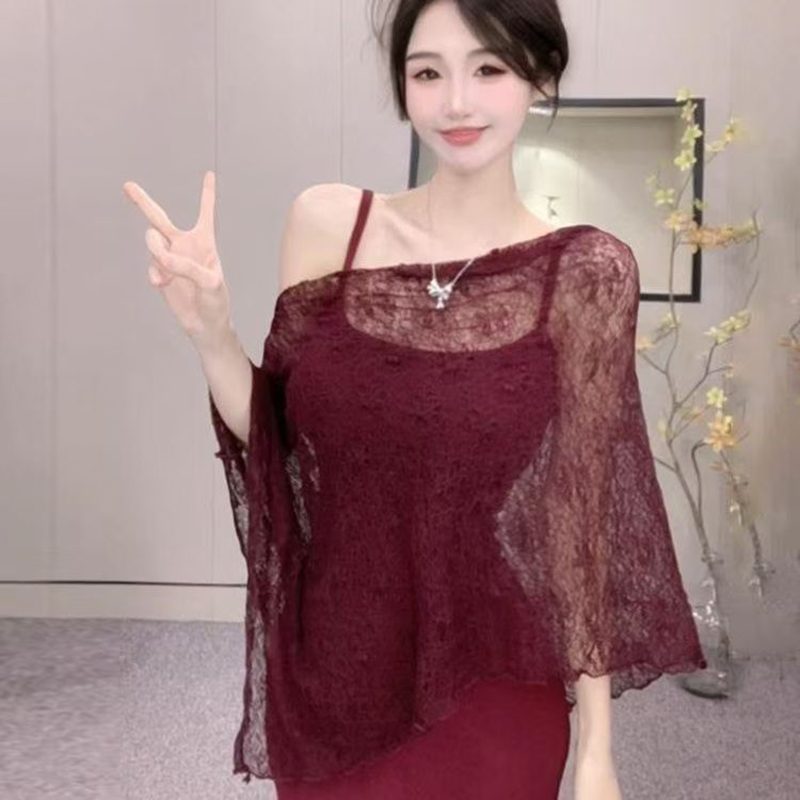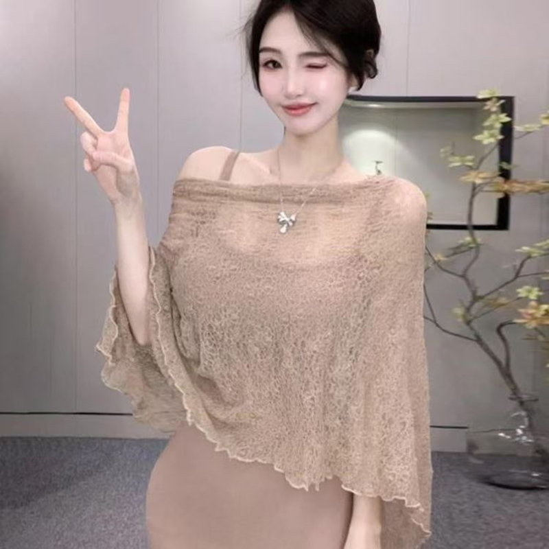 YF7519-图片色时尚镂空蕾丝时髦薄装披肩 空调房防保暖外出防晒斗蓬