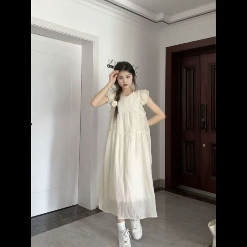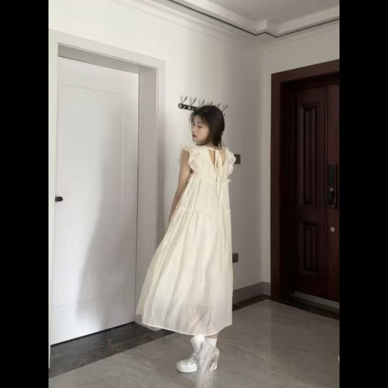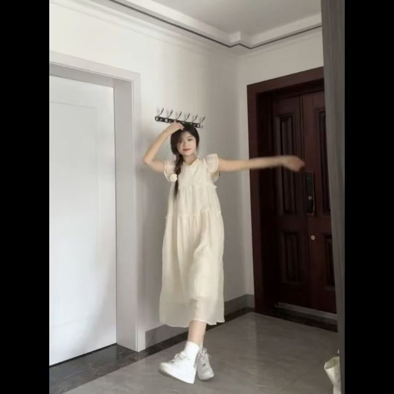 YF7538-图片色温柔风小飞袖套关A字宽松显瘦韩版夏季度假风休闲连衣裙